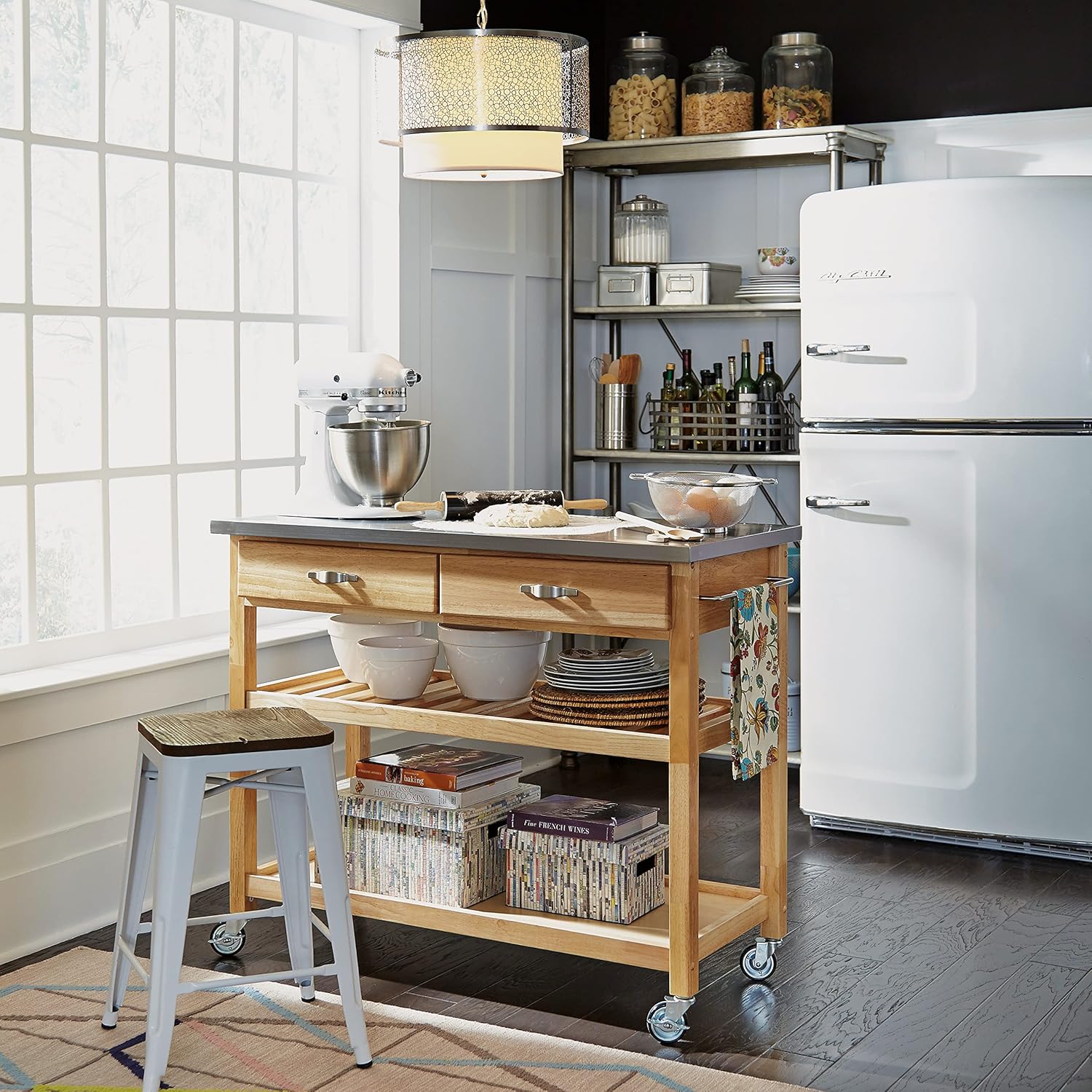 - Brushed steel kitchen towel holder and heavy-duty lockable rubber casters