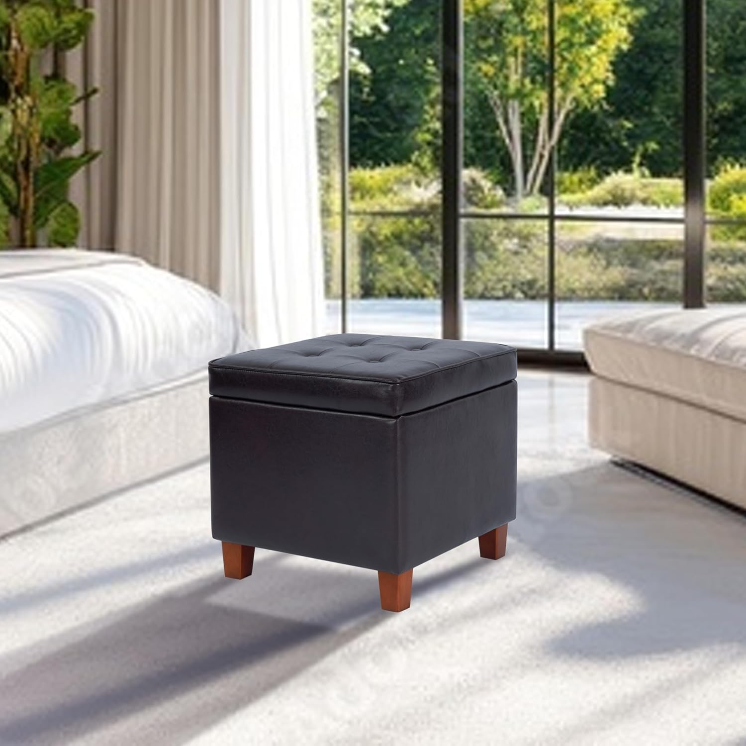 - STORAGE OTTOMAN: Our square ottoman with storage is great accompaniment to any living room or bedroom furniture | When paired together our small storage ottoman provides maximum storage space in a small package