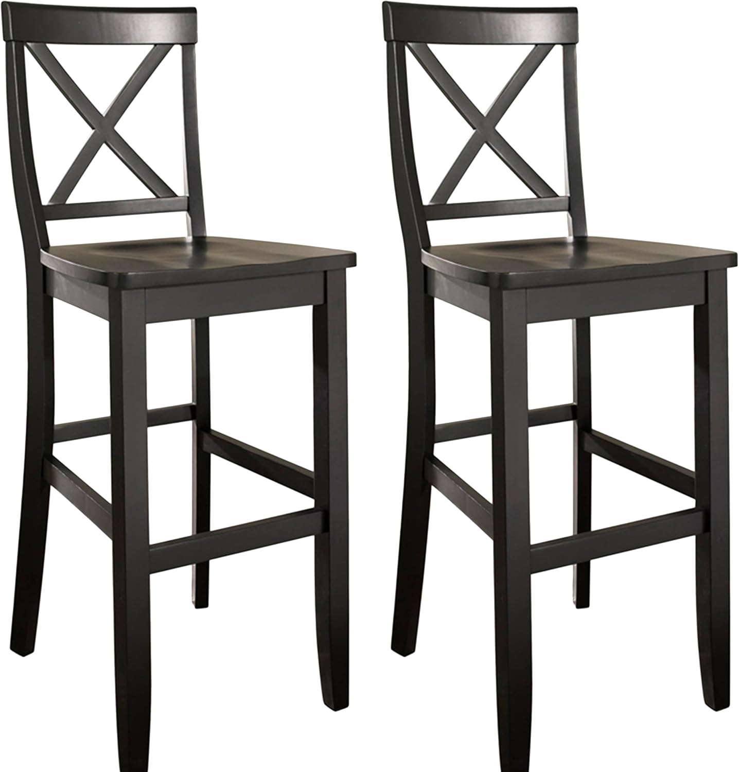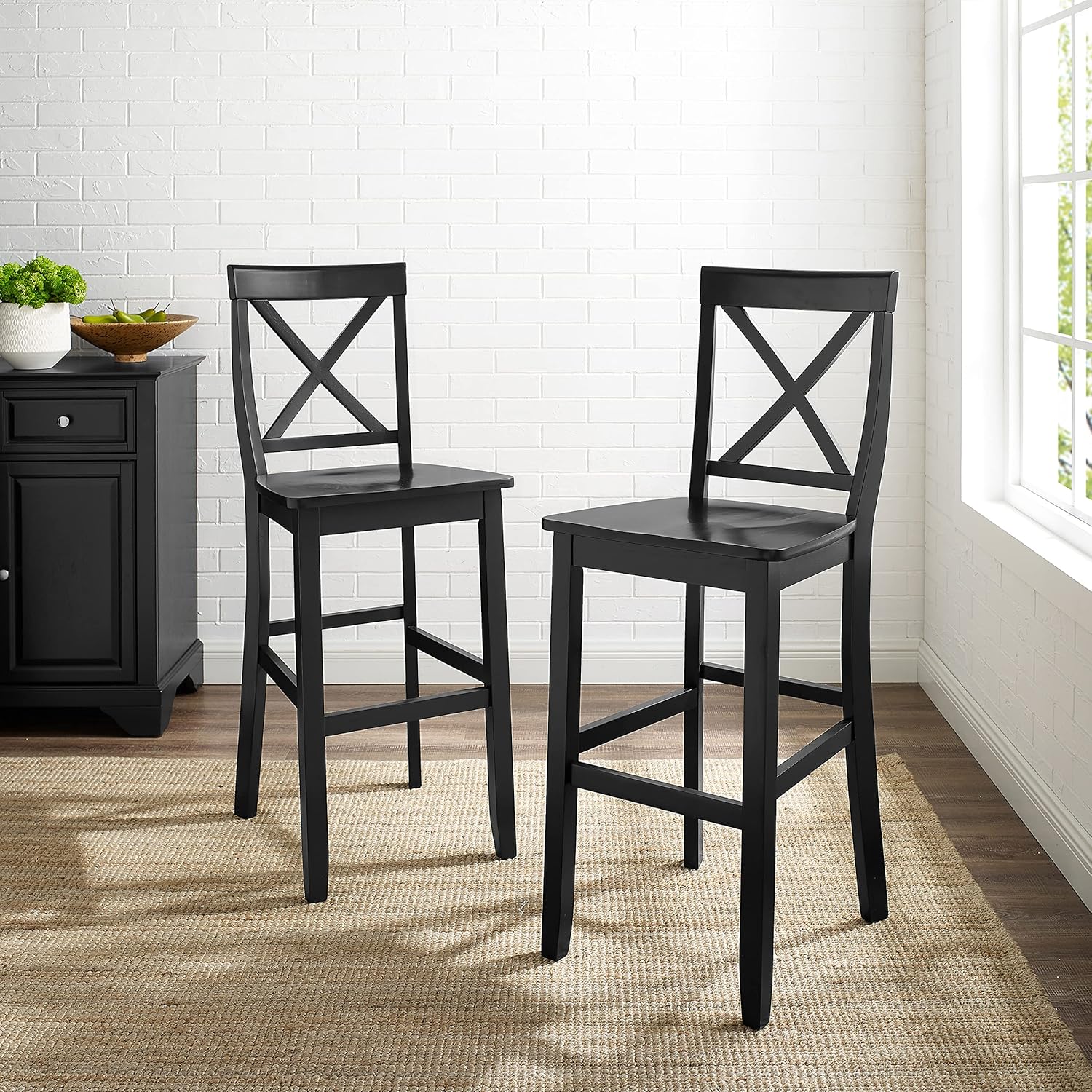 Crosley Furniture X-Back Wood Bar Stools Set of 2, Black, 30-inch