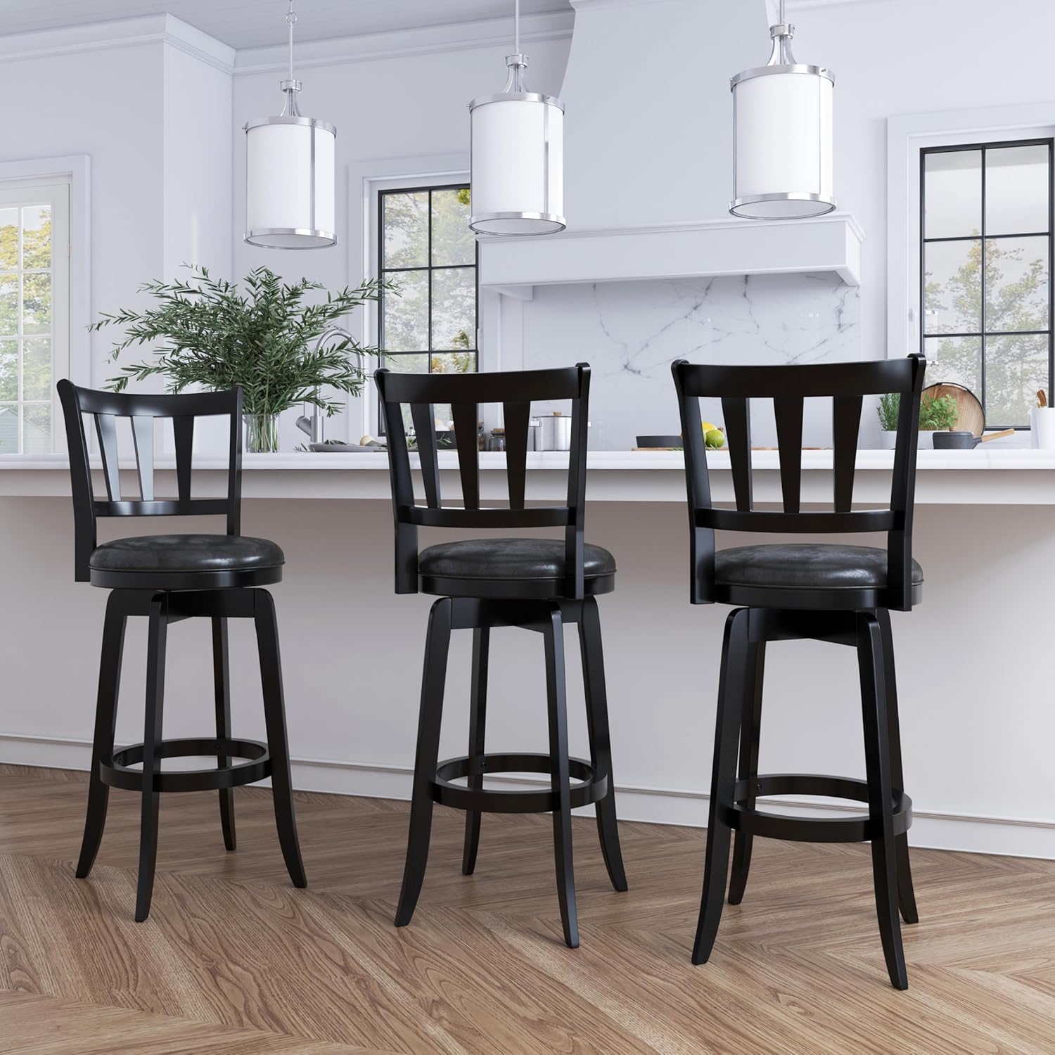 Hillsdale Presque Isle Wood Swivel Stool with Faux Leather Seat, Bar Height, Black