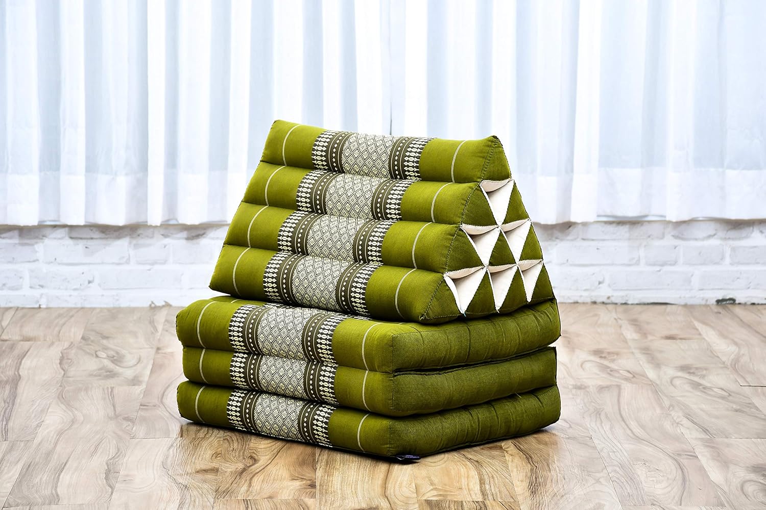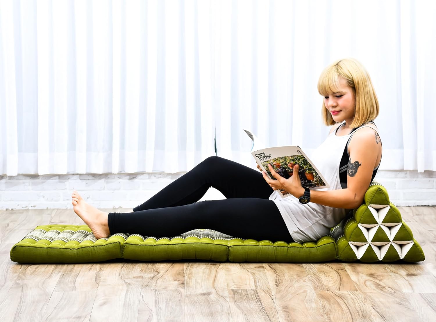Leewadee - Comfortable Japanese Floor Mattress - Thai Floor Bed with Triangle Cushion - Futon Mattress - Thai Massage Mat, 67 x 21 inches, Green, Kapok Filling