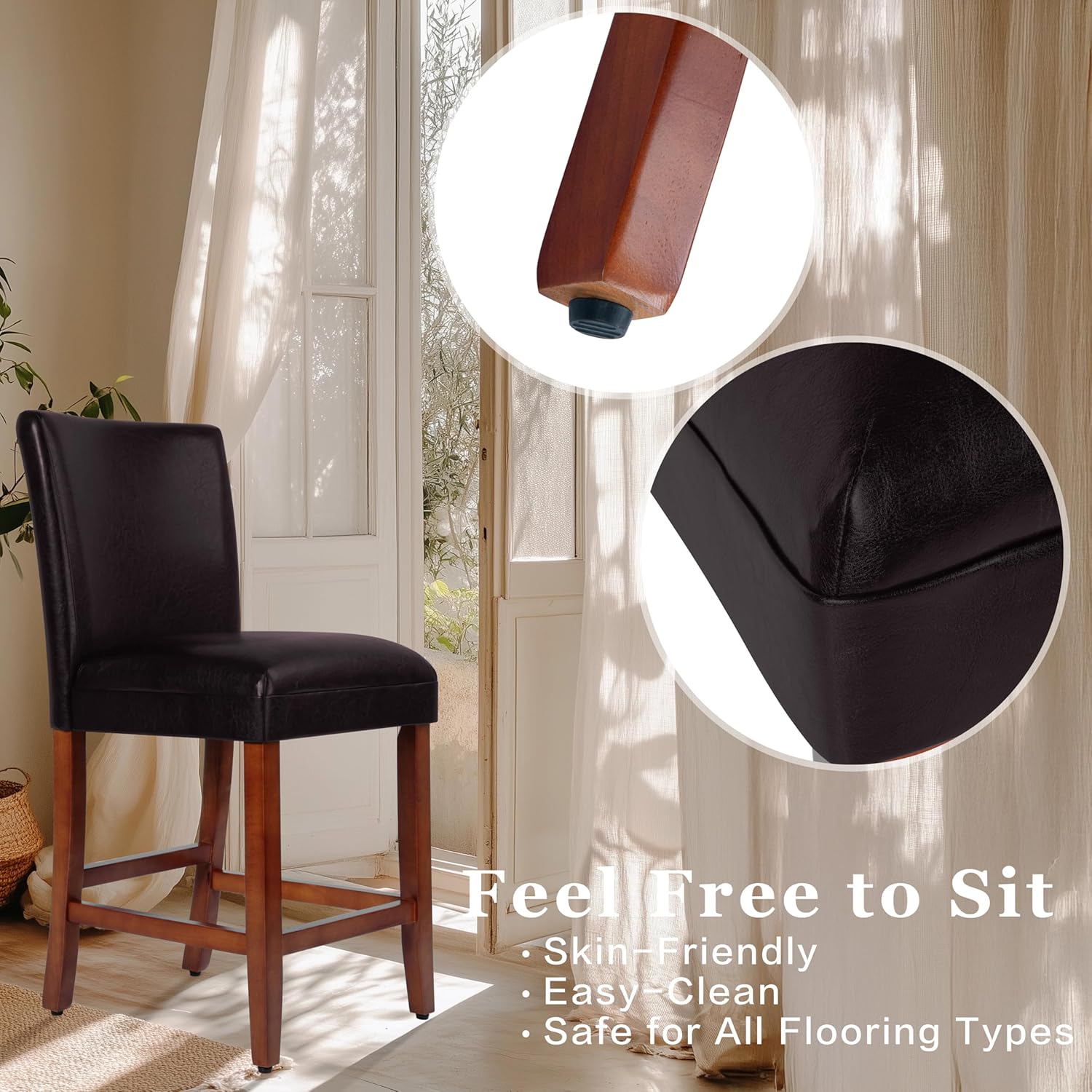 Homepop Home Decor | Classic Counter Height Bar Stools | Faux Leather 24 Inch Bar Stools | Decorative Home Furniture (Brown Faux)
