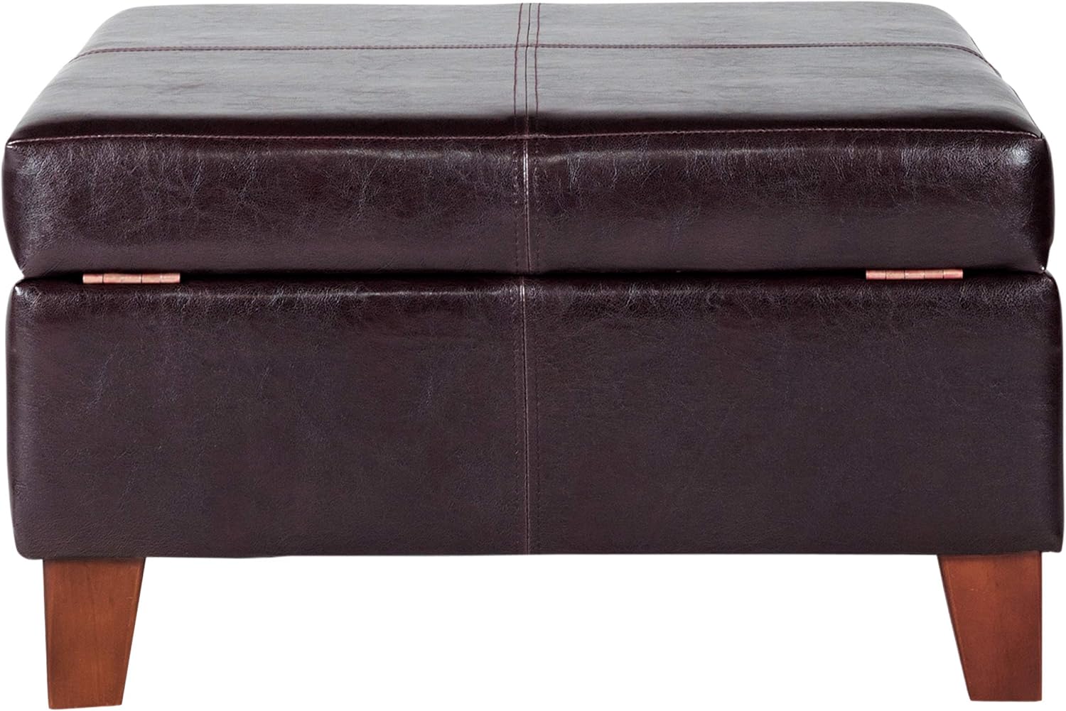 - STORAGE OTTOMAN: With it's rich Faux Leather our Square Ottoman with Storage can be used as a Coffee Table Ottoman | Perfectly completed with tapered wood legs in a rosewood finish along with stitching details for added interest