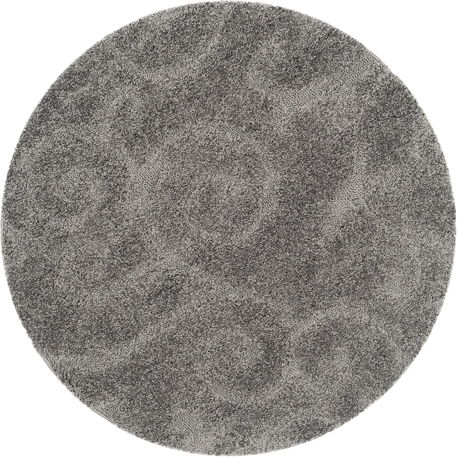 SAFAVIEH Florida Shag Collection Area Rug - 6'7" Round, Grey, Scroll Design, Non-Shedding & Easy Care, 1.2-inch Thick Ideal for High Traffic Areas in Living Room, Bedroom (SG455-8013)