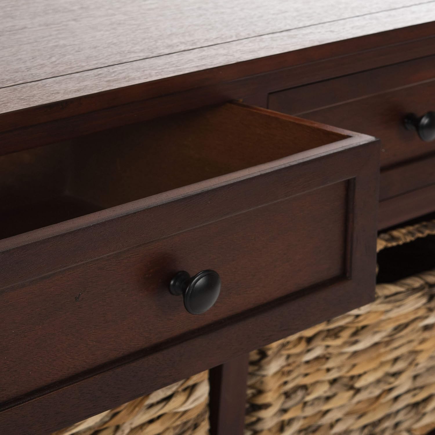 - This storage unit features four wicker baskets drawers, each measuring 13 inches wide by 10.4 inches deep by 4.7 inches tall