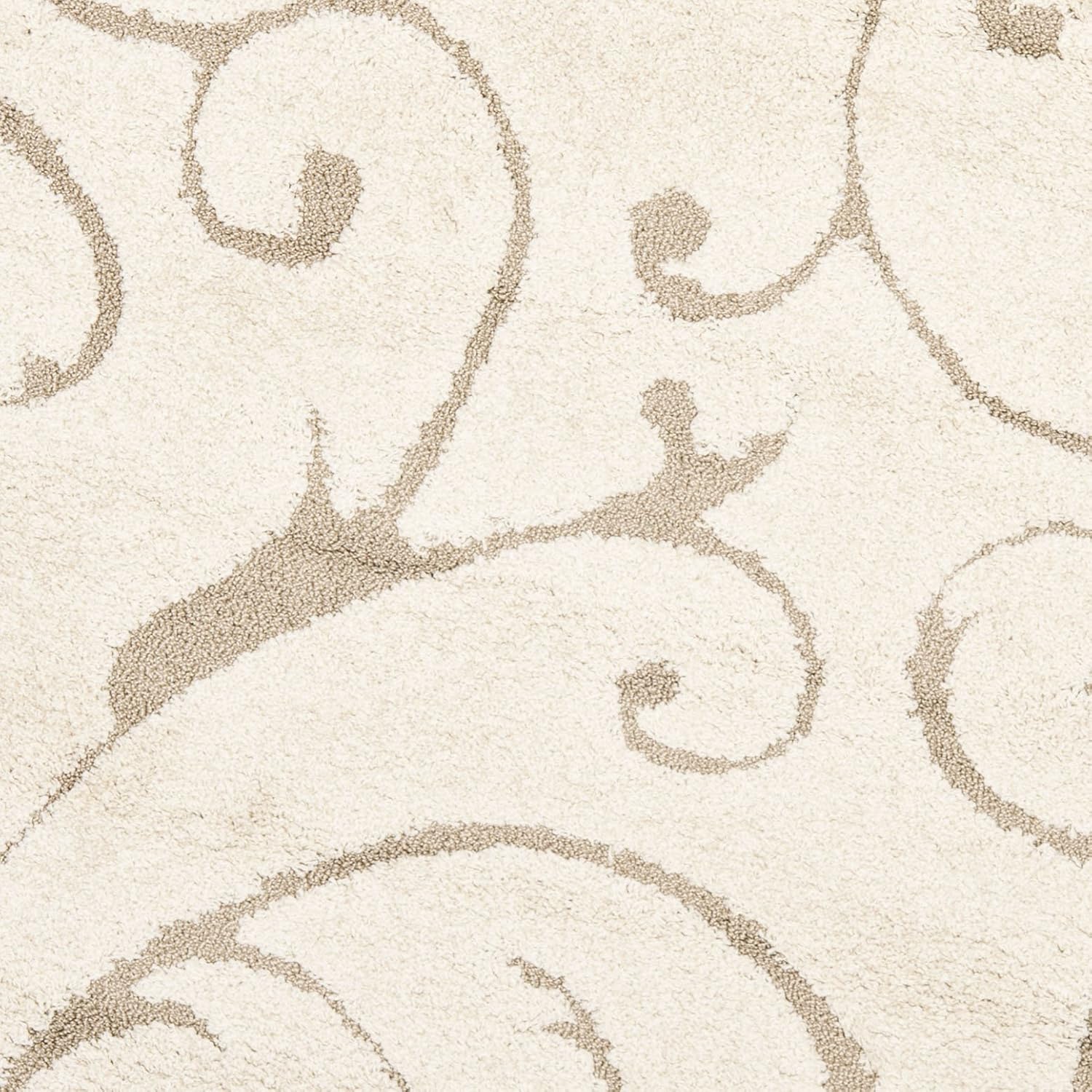 SAFAVIEH Florida Shag Collection Area Rug - 5' Round, Cream & Beige, Scroll Design, Non-Shedding & Easy Care, 1.2-inch Thick Ideal for High Traffic Areas in Living Room, Bedroom (SG455-1113)