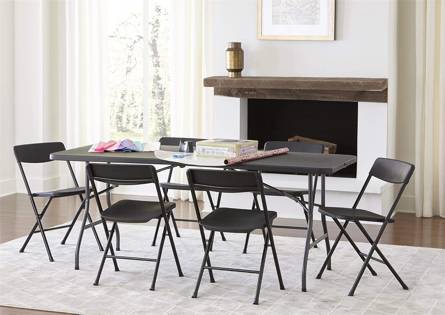 COSCO Molded Folding Banquet Table w/Handle, 6ft, Black