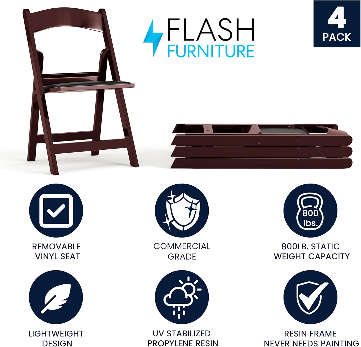Flash Furniture Hercules Series Folding Chairs for Weddings and Formal Events, Stackable Commercial Event Seats with 1,000-lb. Static Weight Capacity, Set of 4, Red Mahogany