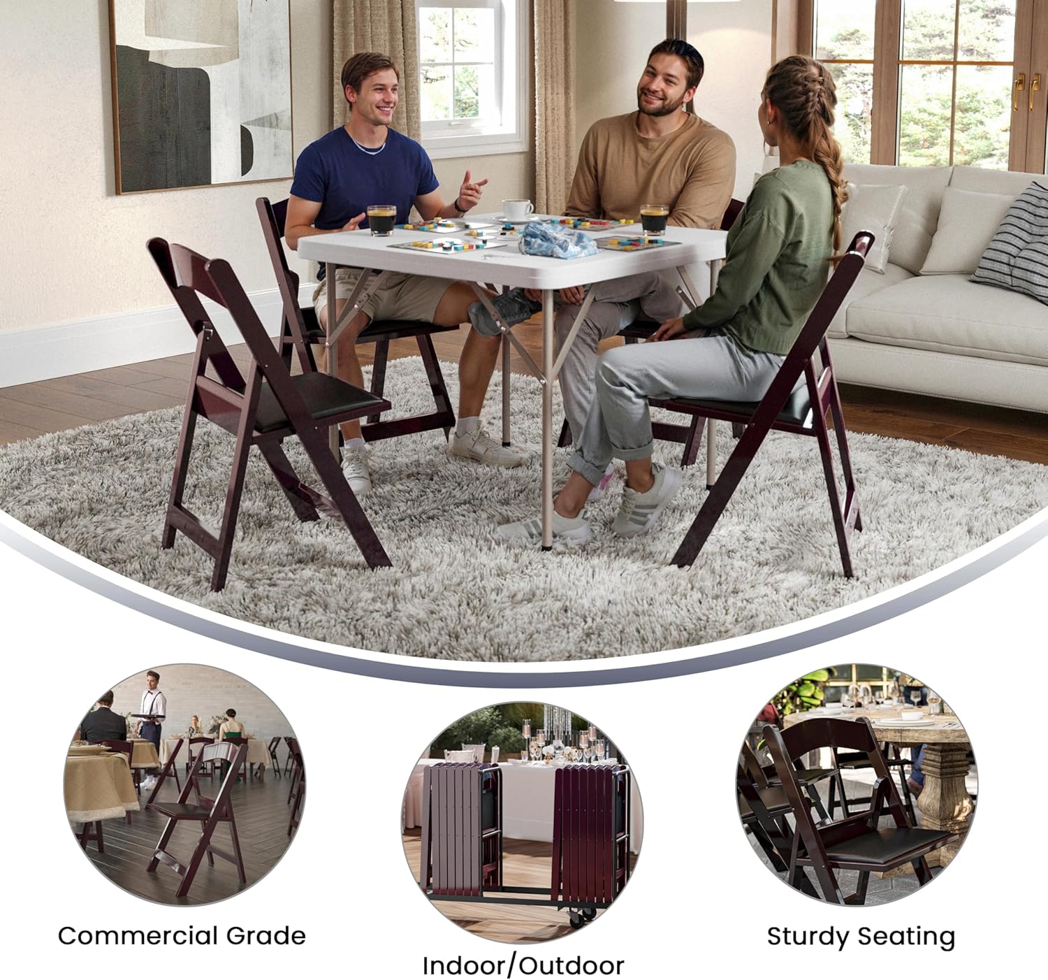 - SET OF 4 FOLDING CHAIRS: Offers reliable, on-demand seating for commercial or home uses such as corporate events, game nights, school functions, weddings, barbecues, and other events or get-togethers