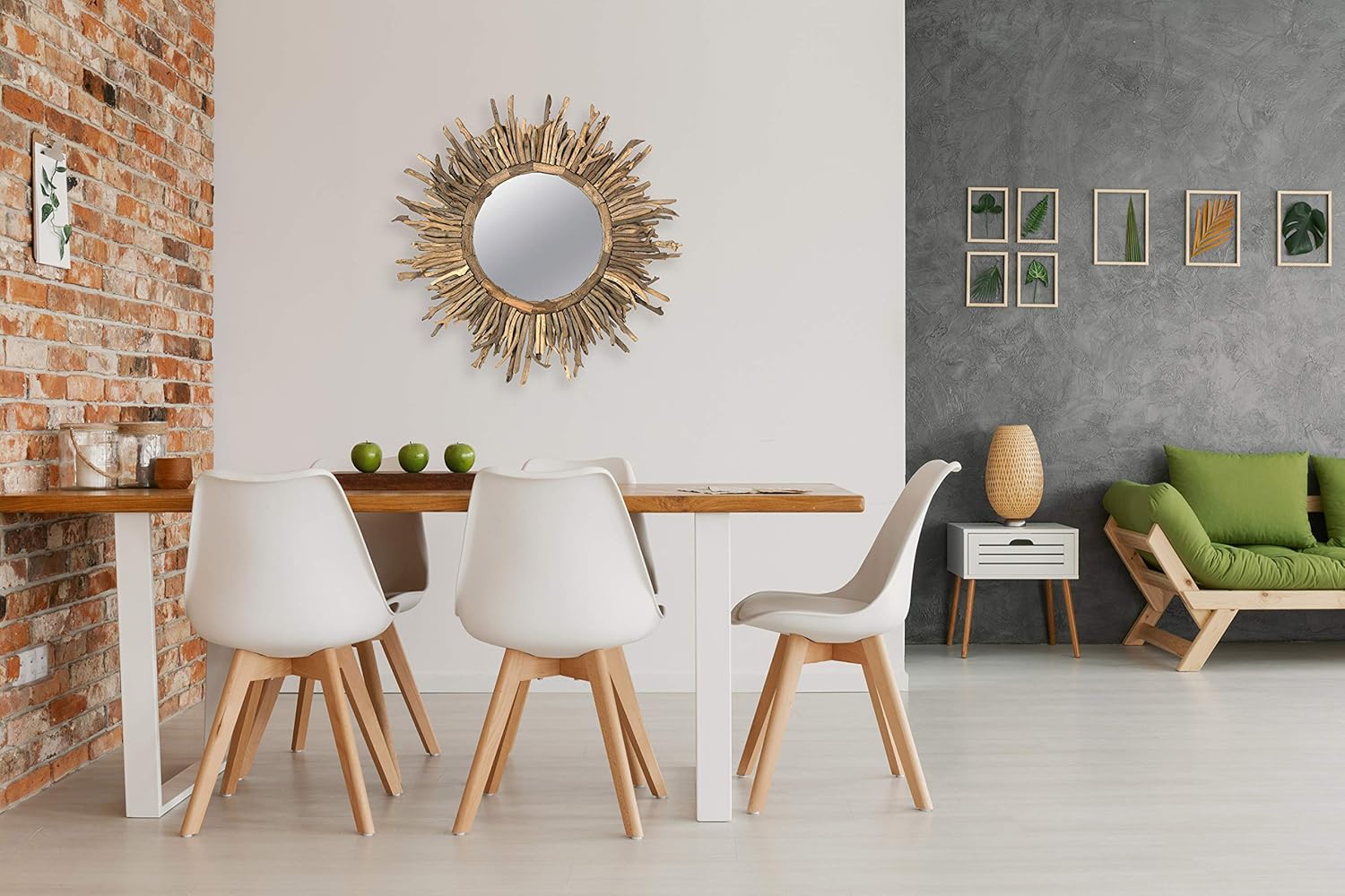 - A stunning and coastal inspired wall mirror that showcases an intricately pieced driftwood frame in a sunburst design