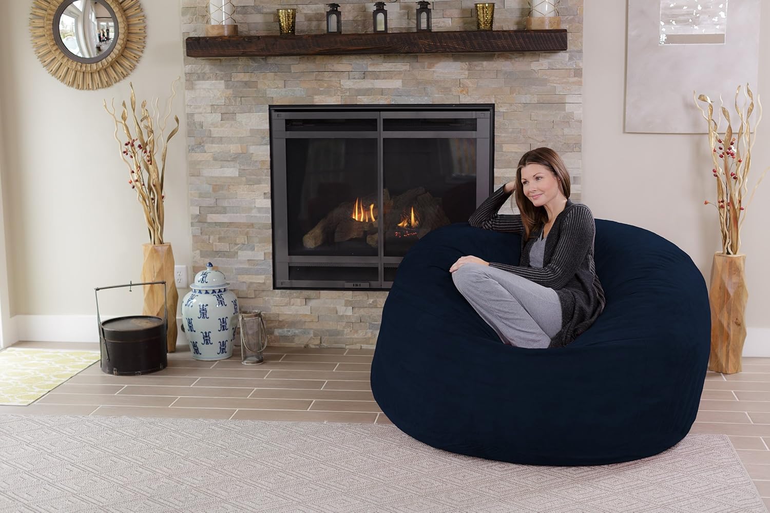 Chill Sack Bean Bag Chair - 5' Giant Memory Foam Lounge Chair with Soft Microfiber Cover – Cozy Furniture for Living Room, Dorm, & Kids' Rooms – Comfortable 5 Ft, Microsuede Lounge Sofa, Navy