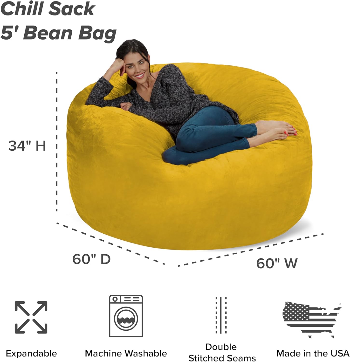 Chill Sack Bean Bag Chair - 5' Giant Memory Foam Lounge Chair with Soft Microfiber Cover – Cozy Furniture for Living Room, Dorm, & Kids' Rooms – Comfortable 5 Ft, Microsuede Lounge Sofa, Lemon