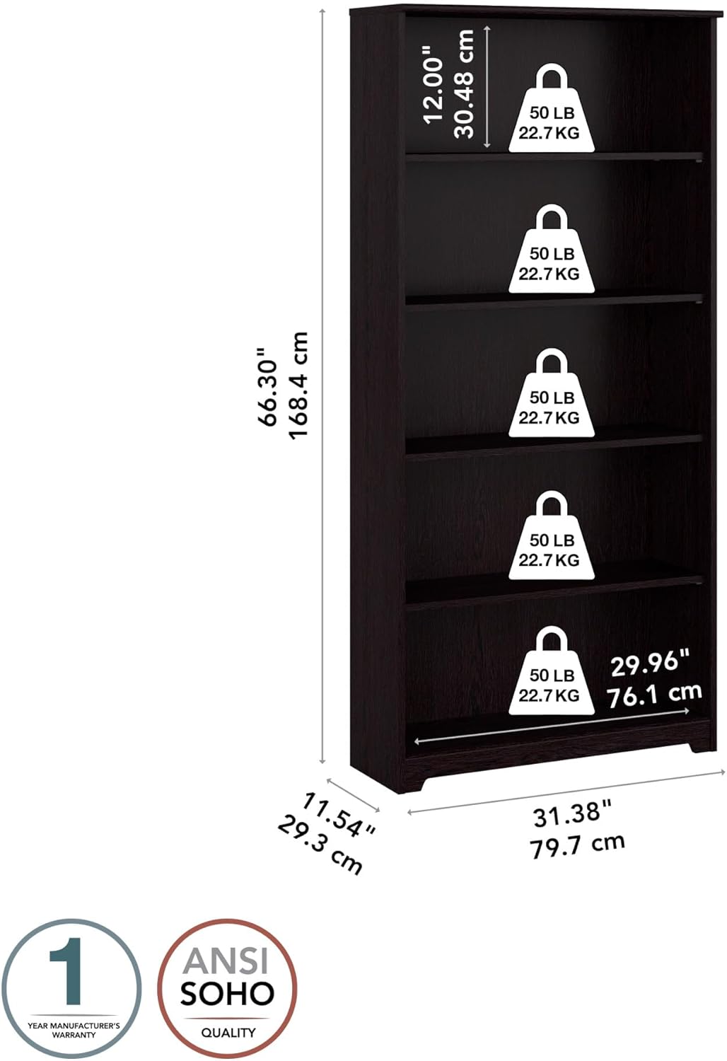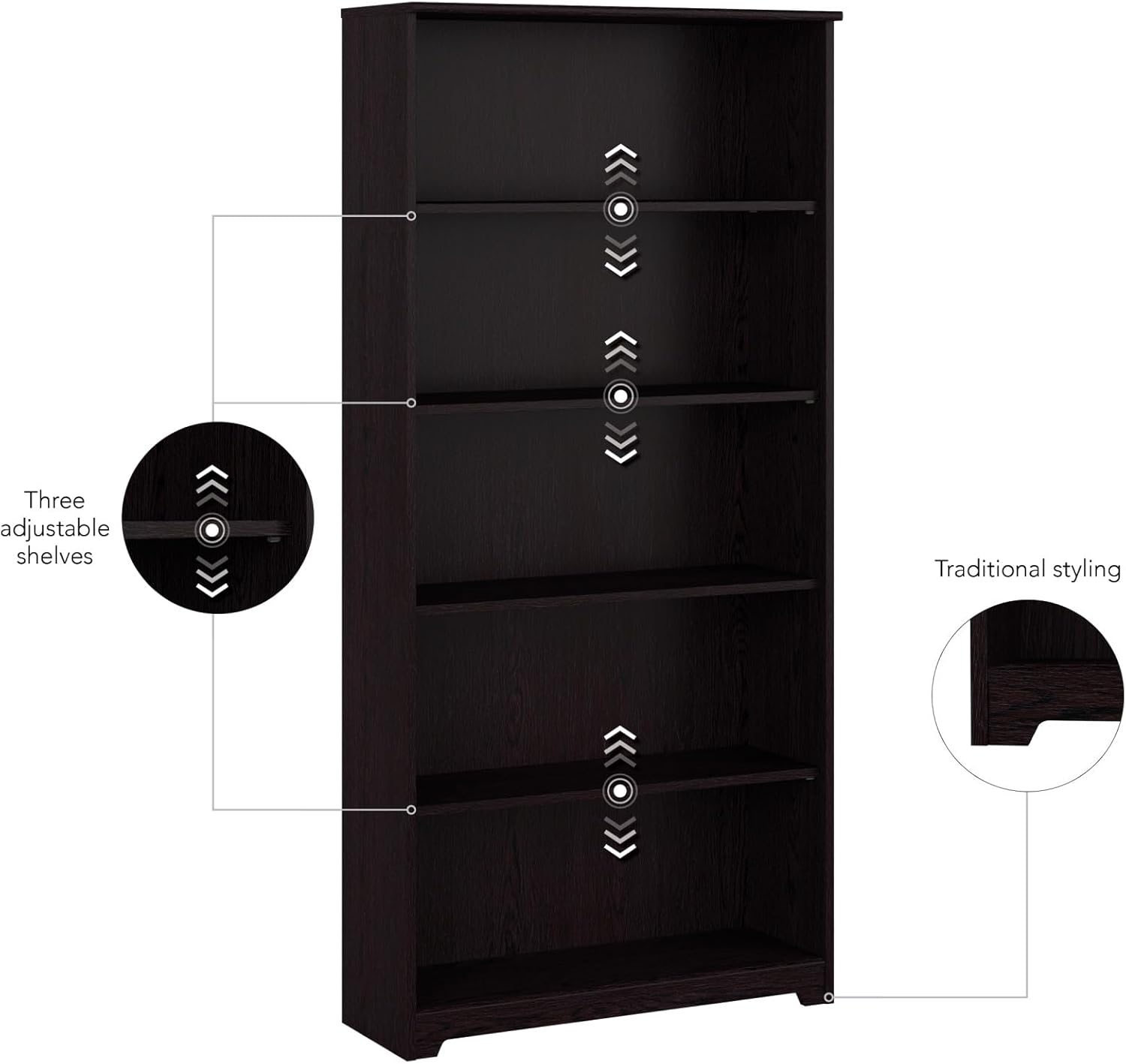 Bush Furniture Tall 5 Shelf Bookcase, Large Open Bookshelf, Sturdy Display Cabinet for Living Room or Home Office, Cabot Collection, Espresso Oak