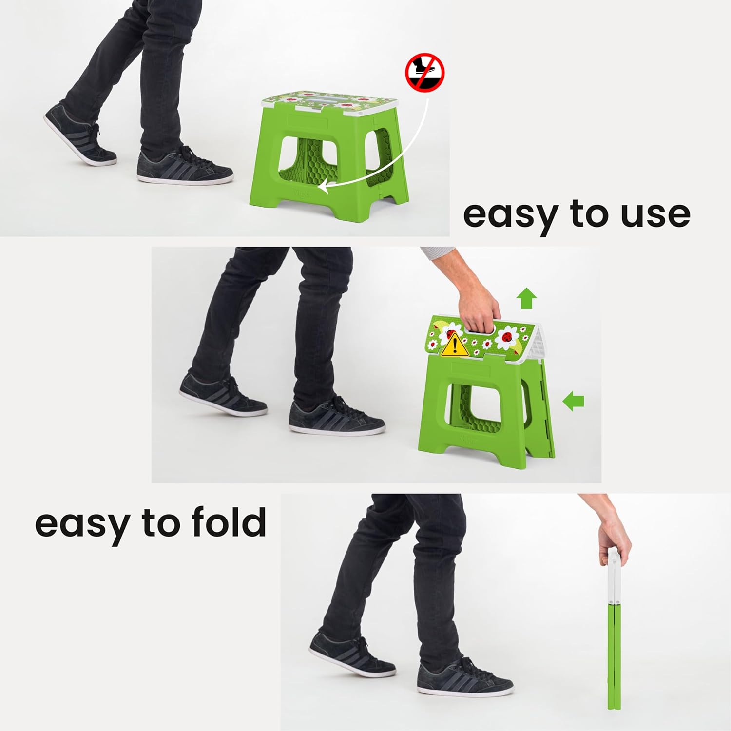- Step Stool with Handle: The foldable stools for adults feature anti-slip grips, a durable textured base, and stabilizing rubber feet to prevent slipping. This ensures the foldable step stool stays securely in place and safe stepping stool for adults.
