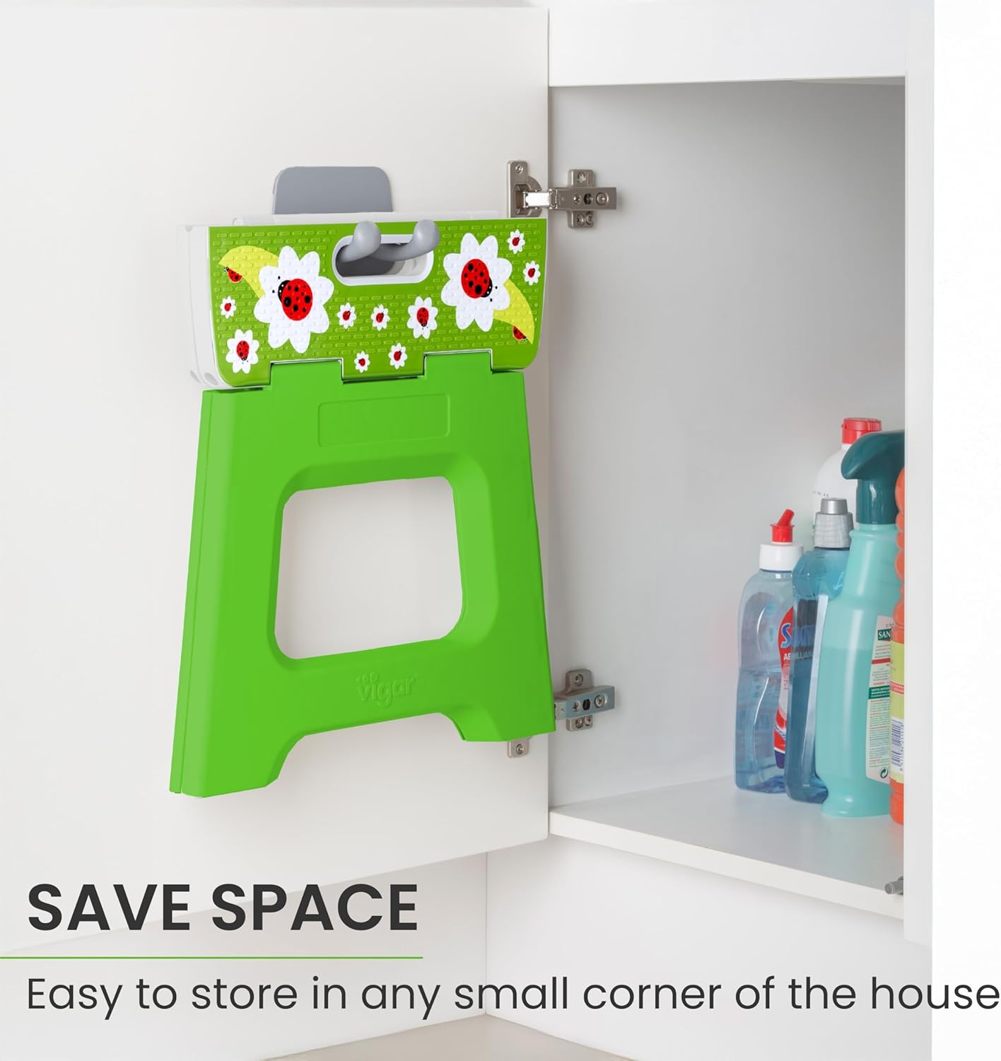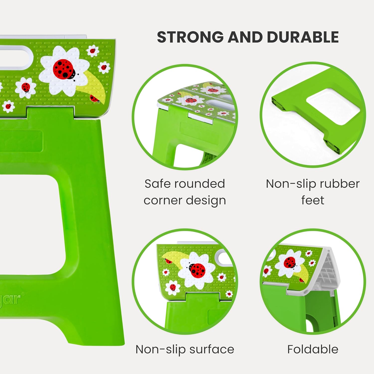 Vigar Compact Step Stool Foldable, 12-1/2-inch Step Stools for Adults up to 330 Pound, Lightweight Stool, Non-Slip Folding Step Stool, Ladybug on Top