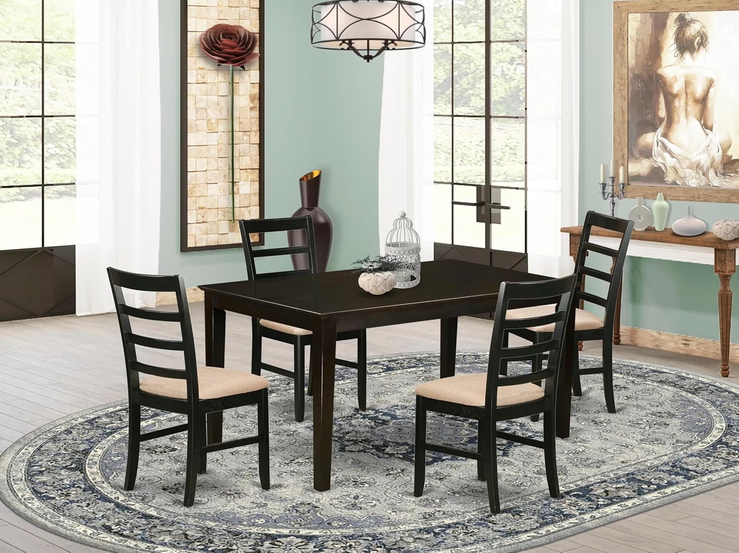 East West Furniture CAPF5-CAP-C 5 Piece Dining Room Furniture Set Includes a Rectangle Kitchen Table and 4 Linen Fabric Upholstered Dining Chairs, 36x60 Inch, Cappuccino