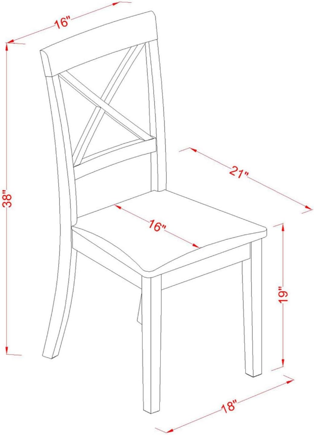 - PRODUCT DIMENSIONS: Sizes of the wonderful wooden dining room chairs are: Length: 21; Width: 18; Height: 38. Proportions of the stunning dinner table are: Length: 42; Width: 42; Height: 29.5.