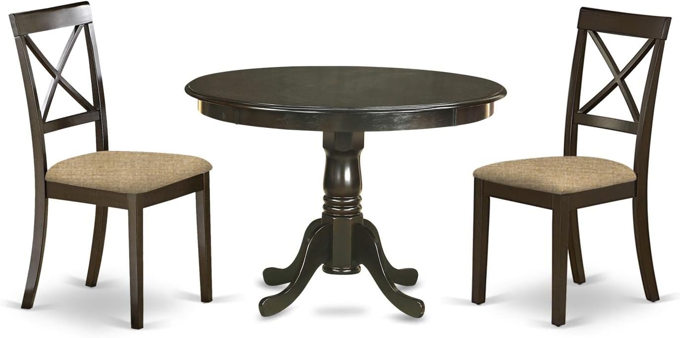 East West Furniture HLBO3-CAP-C 3 Piece Dining Table Set for Small Spaces Contains a Round Dining Room Table with Pedestal and 2 Linen Fabric Upholstered Chairs, 42x42 Inch, Cappuccino