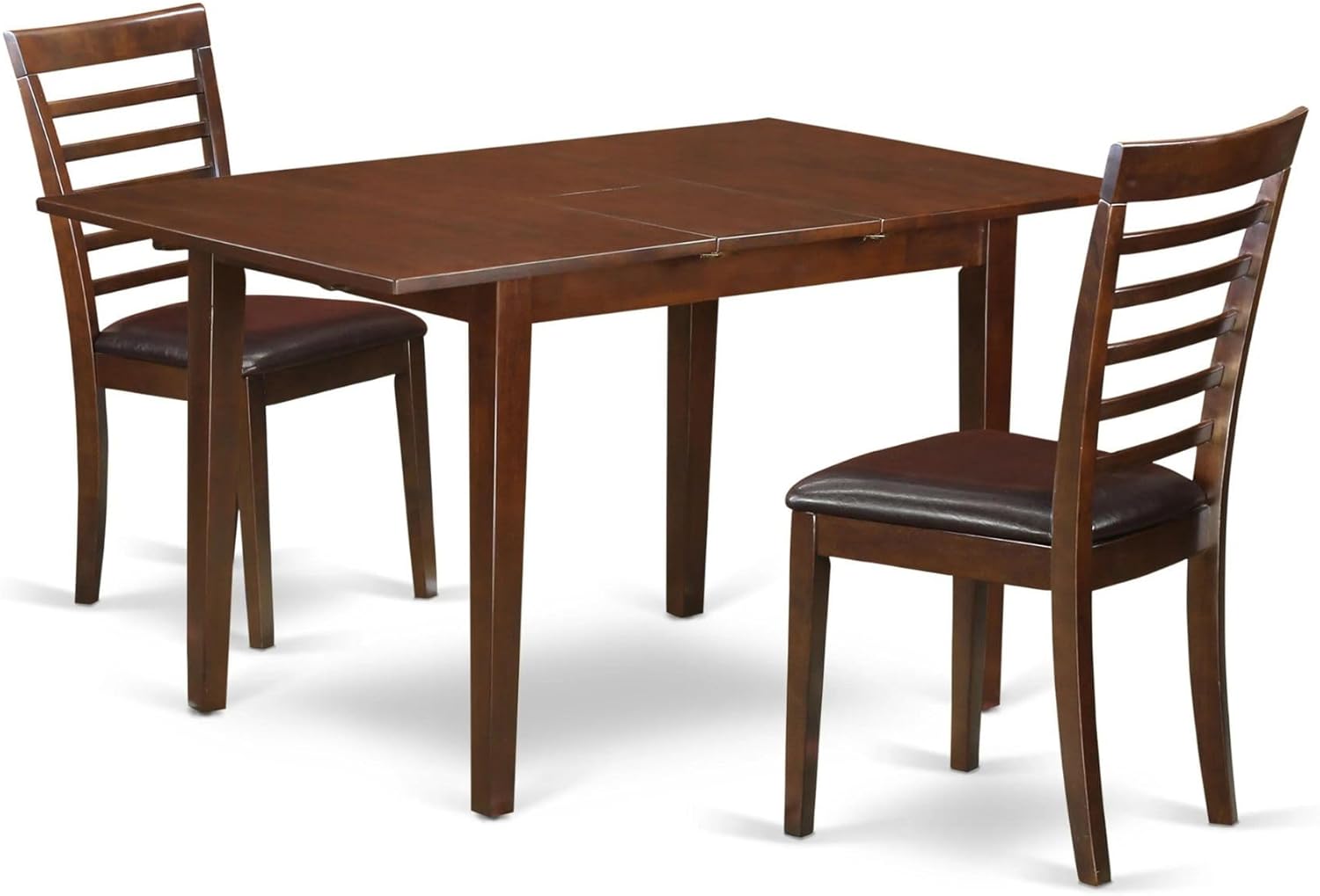 East West Furniture NOML3-MAH-LC 3 Piece Dining Table Set Contains a Rectangle Dining Room Table with Butterfly Leaf and 2 Faux Leather Upholstered Chairs, 32x54 Inch, Mahogany