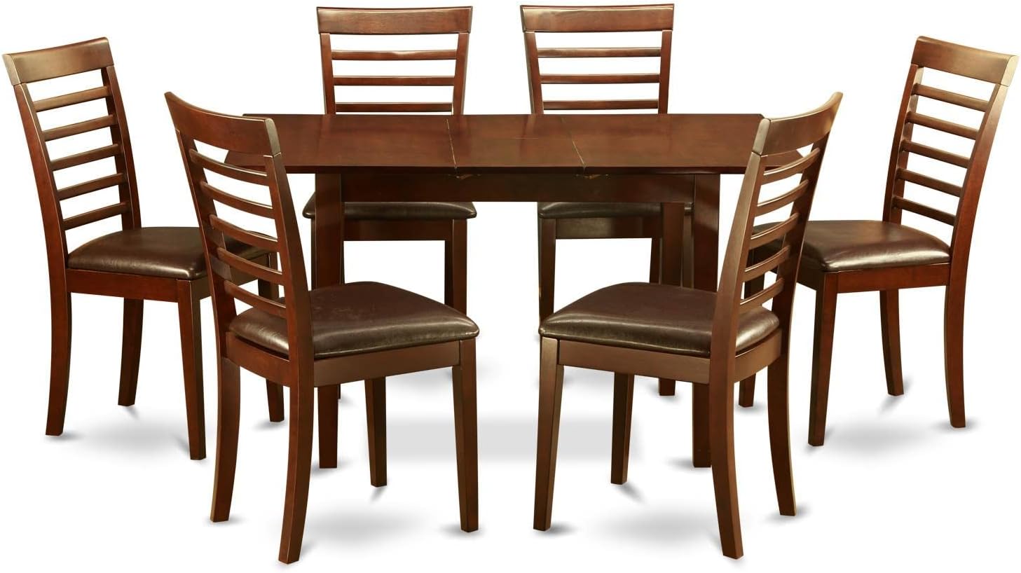 East West Furniture NOML7-MAH-LC 7 Piece Dining Table Set Consist of a Rectangle Dinner Table with Butterfly Leaf and 6 Faux Leather Dining Room Chairs, 32x54 Inch, Mahogany