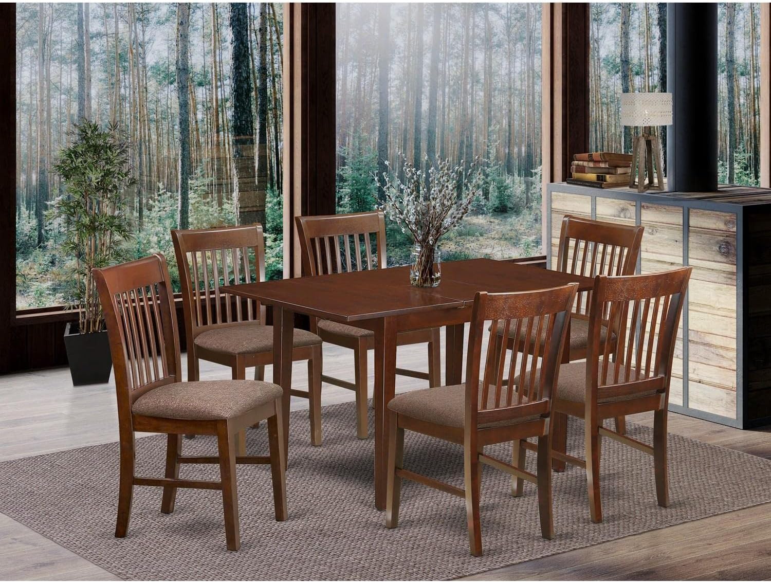 East West Furniture PSNO7-MAH-C 7 Piece Dining Room Furniture Set Consist of a Rectangle Wooden Table with Butterfly Leaf and 6 Linen Fabric Upholstered Chairs, 32x60 Inch, Mahogany