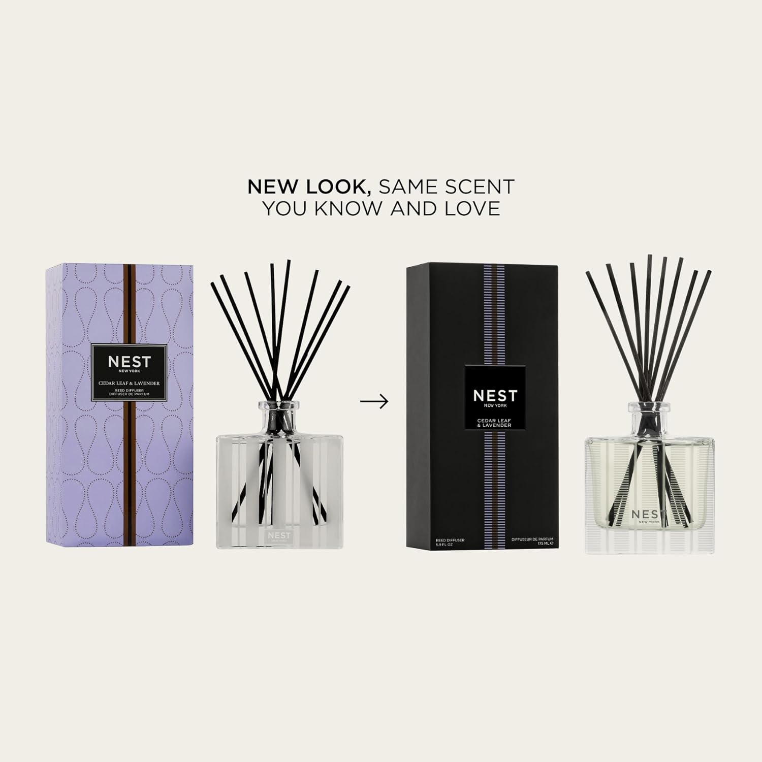 NEST New York Reed Diffuser, Cedar Leaf & Lavender - 5.9 fl oz - Fragrance for Up to 90 Days - Reusable, Refillable Glass Holder - Includes 8 All-Natural Reed Sticks - Flame Free