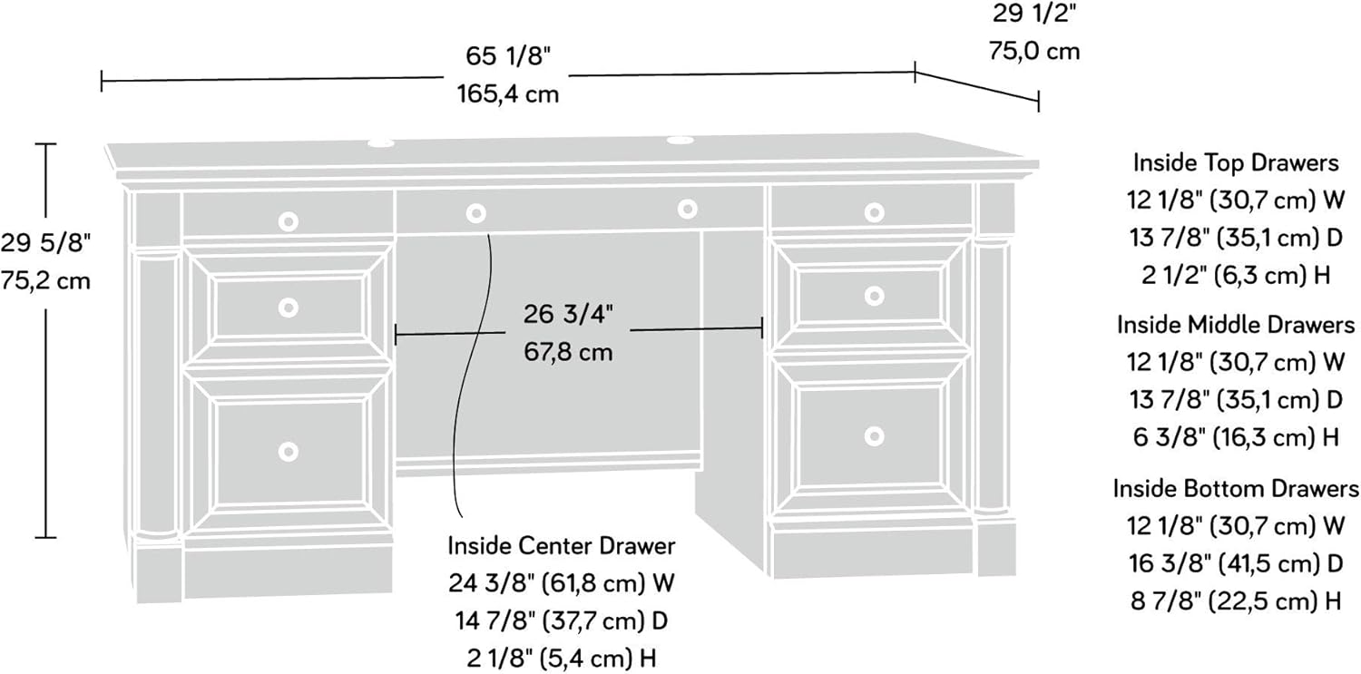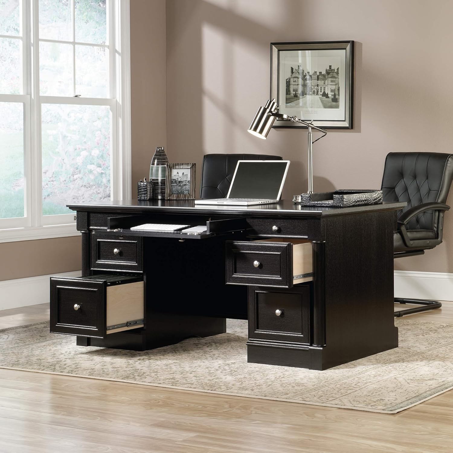 Sauder Palladia Office Desk with Drawers, Executive Desk with File Cabinet Storage, Cable Management, Keyboard Tray, in Wind Oak Finish
