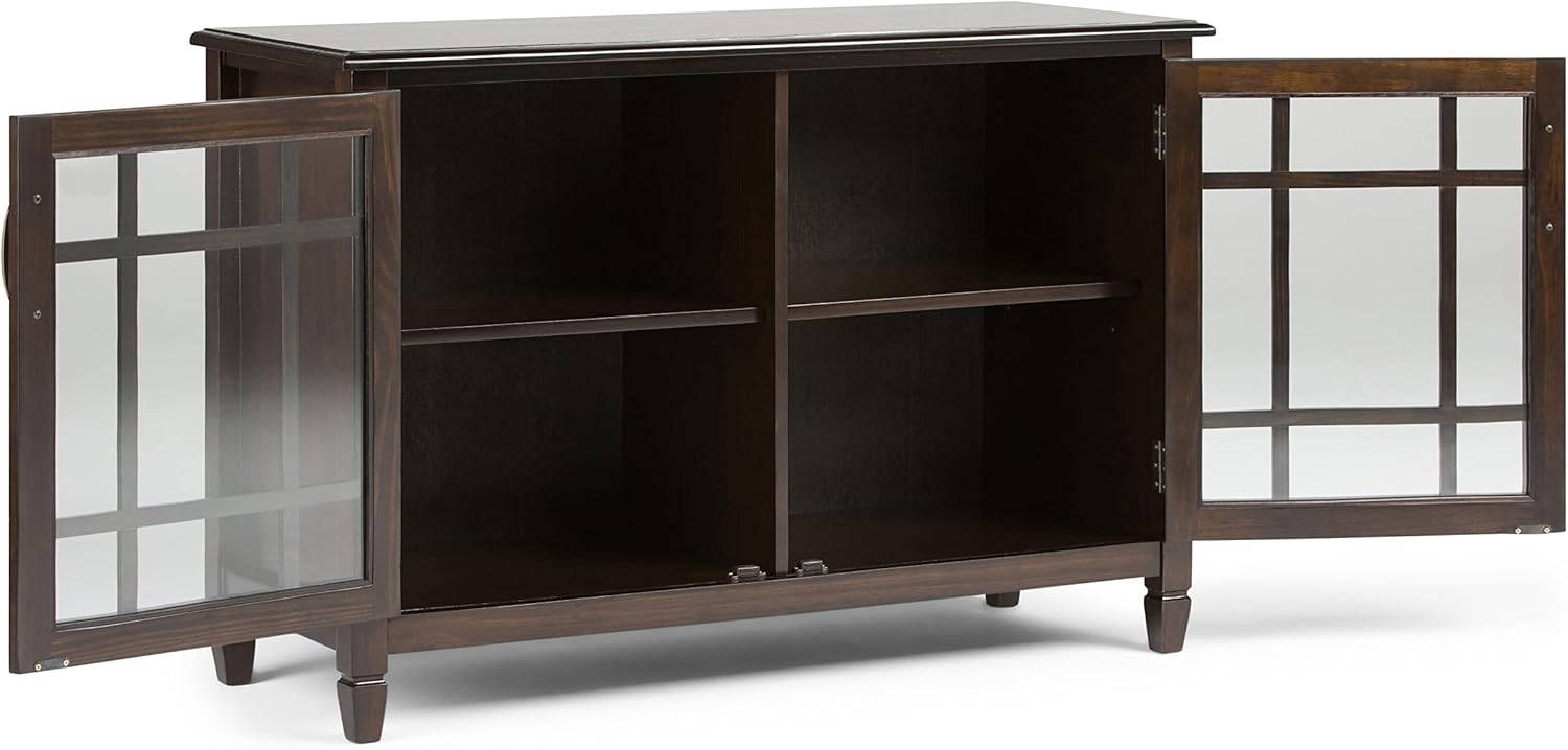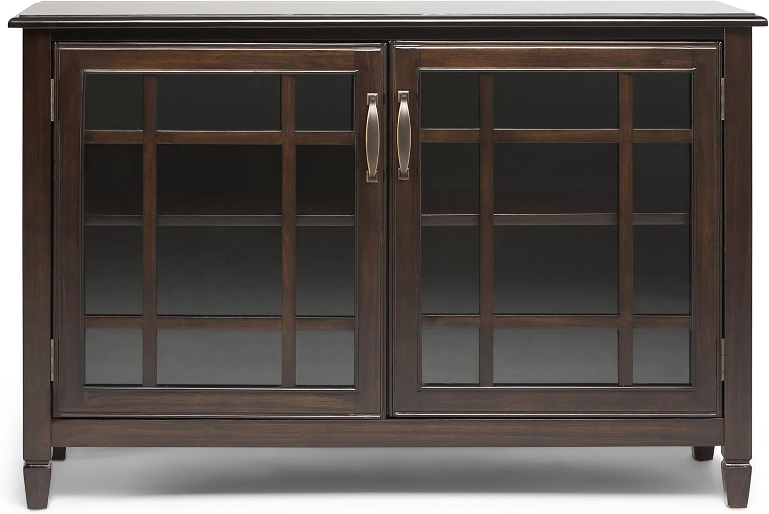 SIMPLIHOME Connaught SOLID WOOD 46 inch Wide Traditional Low Storage Cabinet in Dark Chestnut Brown for the Living Room, Entryway and Family Room