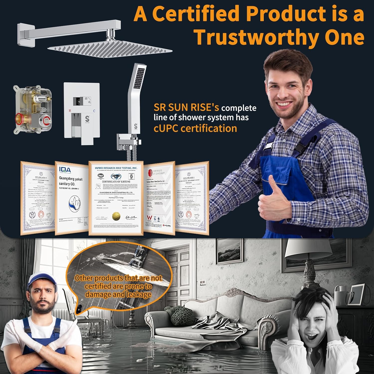 - Install with Confidence: SR SUN RISE Shower System has cUPC Certification and compliance with the following standard(s): ASME A112.18.1-2018/CSA B125.1-18. Designed for use with standard 1/2" U.S. plumbing connections. Approved by the California Energy Commission
