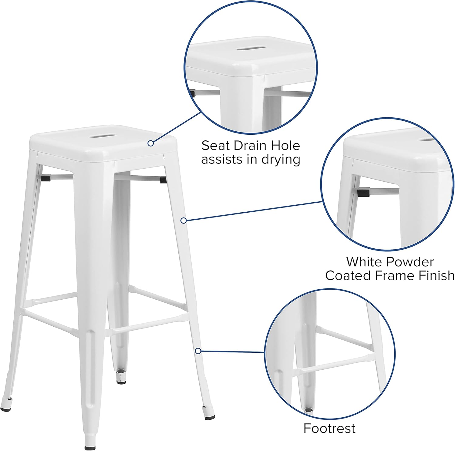 Flash Furniture Lily 4 Pack Commercial Grade 30" High Backless White Metal Indoor-Outdoor Barstool with Square Seat