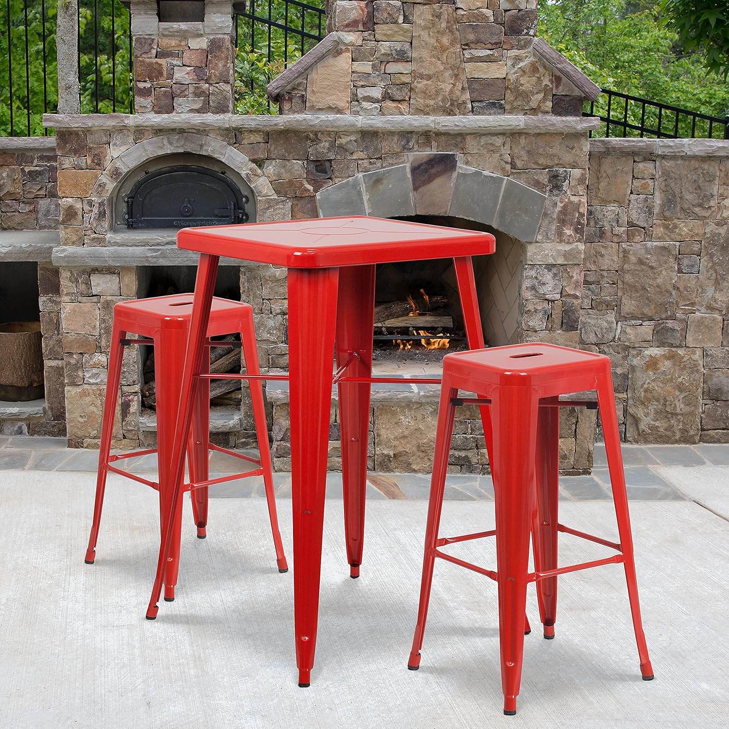 Flash Furniture Lily 4 Pack Commercial Grade 30" High Backless Red Metal Indoor-Outdoor Barstool with Square Seat