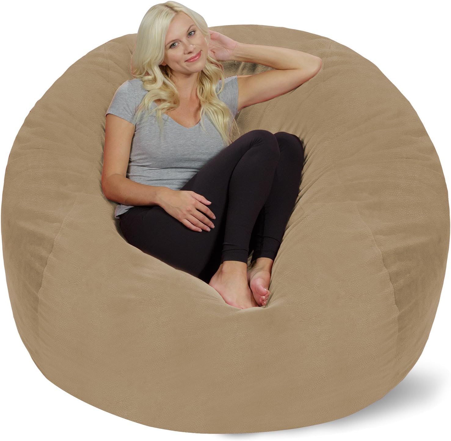 Chill Sack Bean Bag Chair - 5' Giant Memory Foam Lounge Chair with Soft Microfiber Cover – Cozy Furniture for Living Room, Dorm, & Kids' Rooms – Comfortable 5 Ft, Pebble Lounge Sofa, Tan