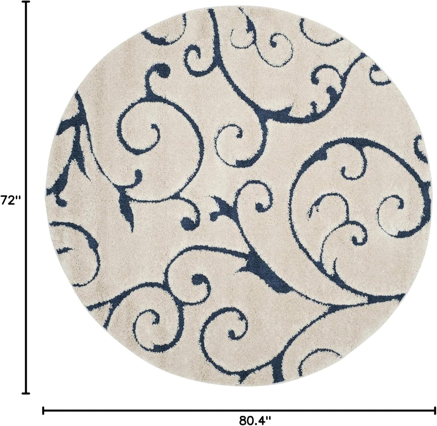 SAFAVIEH Florida Shag Collection Area Rug - 6'7" Round, Cream & Blue, Scroll Design, Non-Shedding & Easy Care, 1.2-inch Thick Ideal for High Traffic Areas in Living Room, Bedroom (SG455-1165)