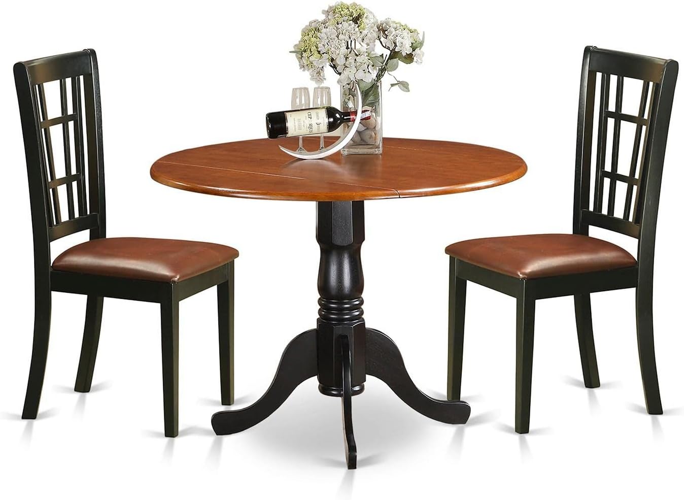 East West Furniture DLNI3-BCH-LC 3 Piece Dining Set Contains a Round Dining Room Table with Dropleaf and 2 Faux Leather Upholstered Chairs, 42x42 Inch, Black & Cherry