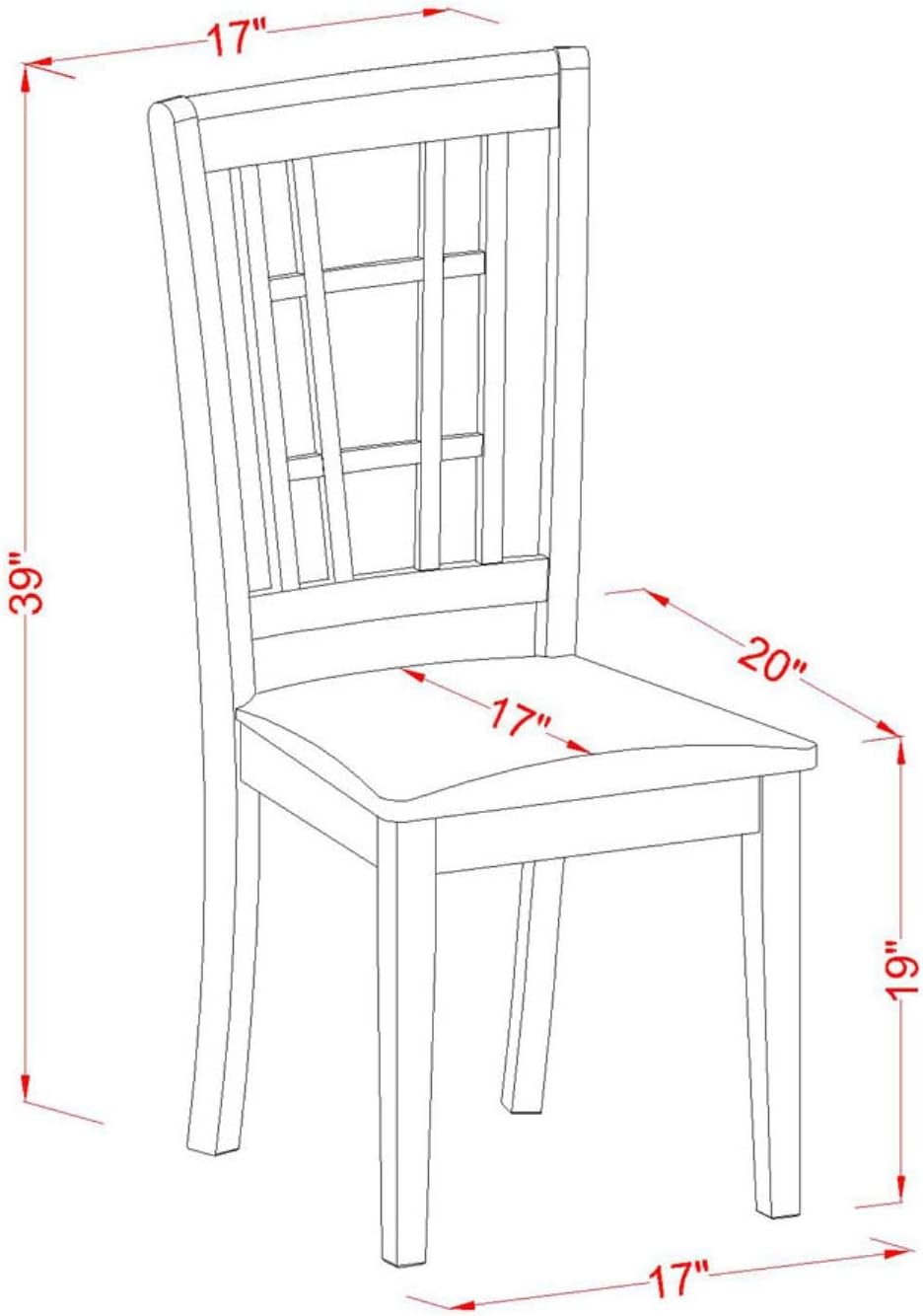 - ITEM DIMENSIONS: The Dimensions of an Attractive Wood Chair are: Length: 20; Width: 17; Height: 39. Dimensions of the Modern Kitchen Table are: Length: 42; Width: 42; Height: 29.5.