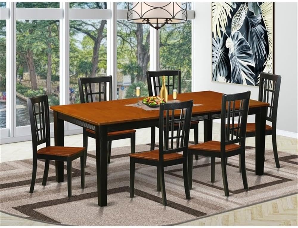 East West Furniture QUNI7-BCH-W 7 Piece Kitchen Table Set Consist of a Rectangle Dining Table with Butterfly Leaf and 6 Dining Room Chairs, 40x78 Inch, Black & Cherry