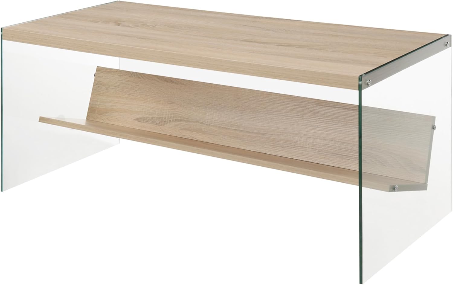 Convenience Concepts SoHo Glass Coffee Table 40" - Modern Living Room Table with Storage Shelf, Contemporary Coffee Table for Family Room, Weathered White