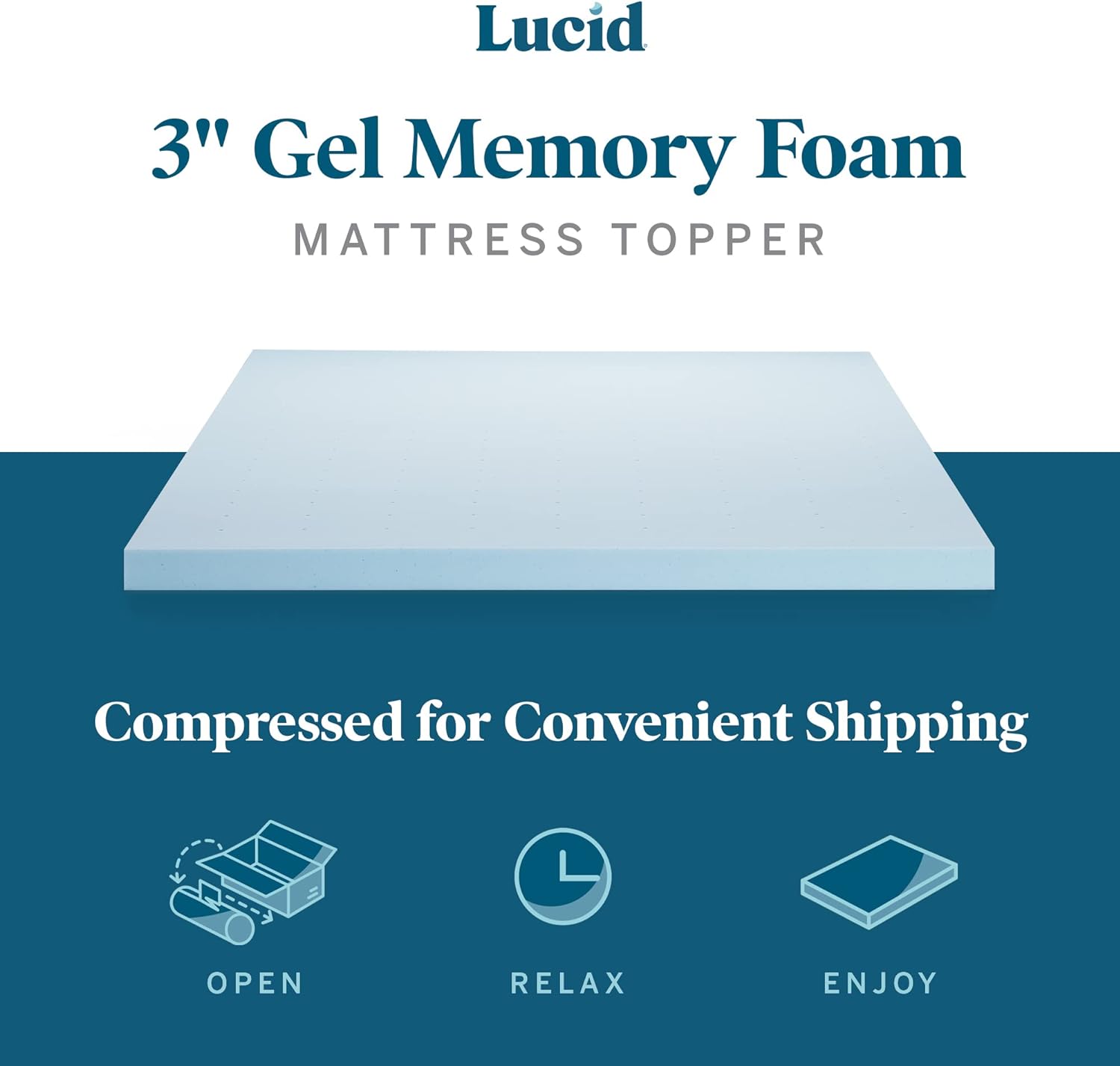 LUCID 3-inch Ventilated Gel Memory Foam Mattress Topper - King