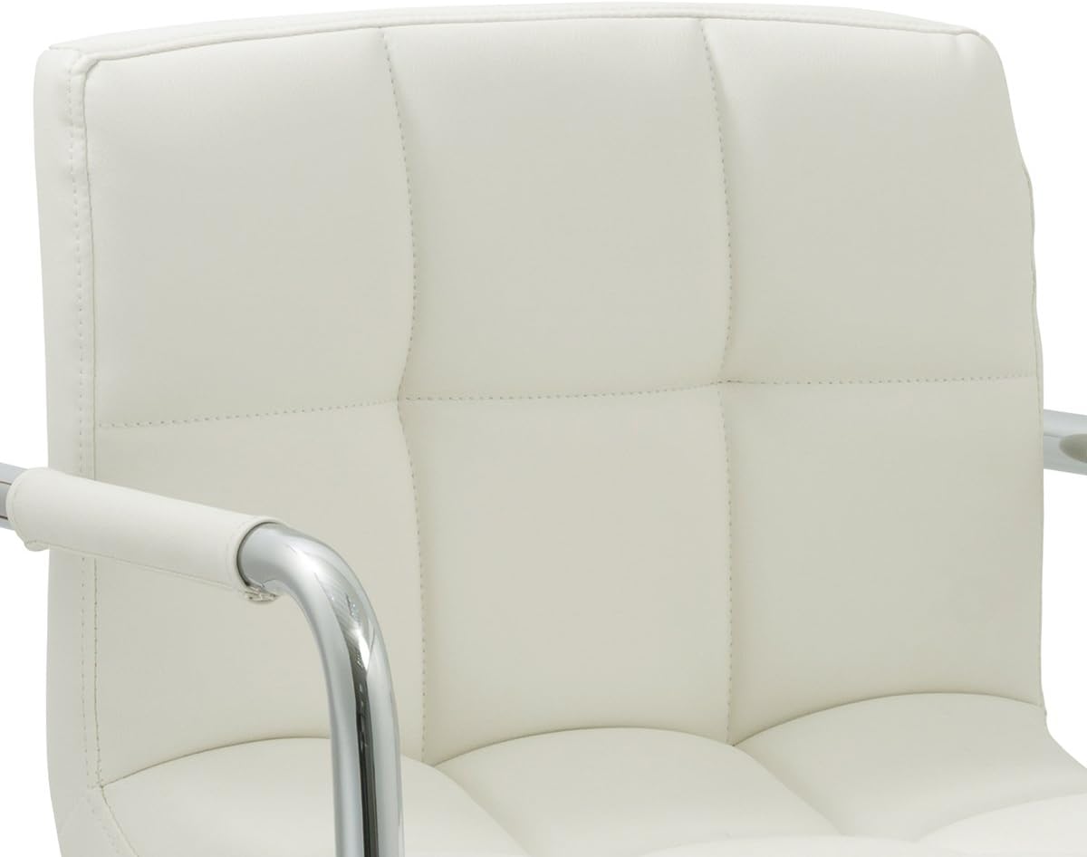 AC Pacific Contemporary Adjustable Swivel Kitchen Bar Stool Chair with Cushion and Armrest, 24"-33", White