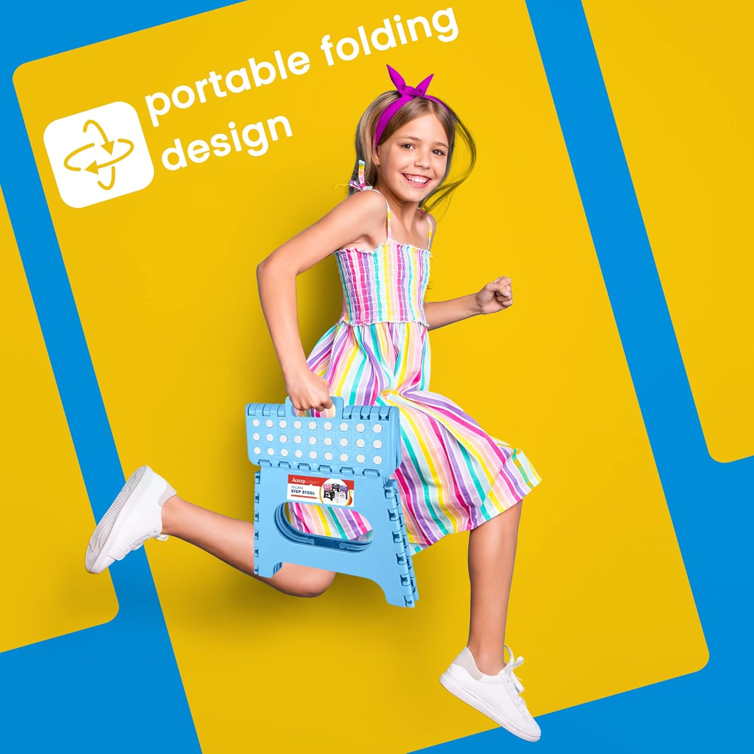 ACSTEP Folding Step Stool for Adults 11 Height Lightweight Plastic Stepping Stool Foldable Step Stool Hold up to 300lbs Non Slip Collapsible Stool Blue