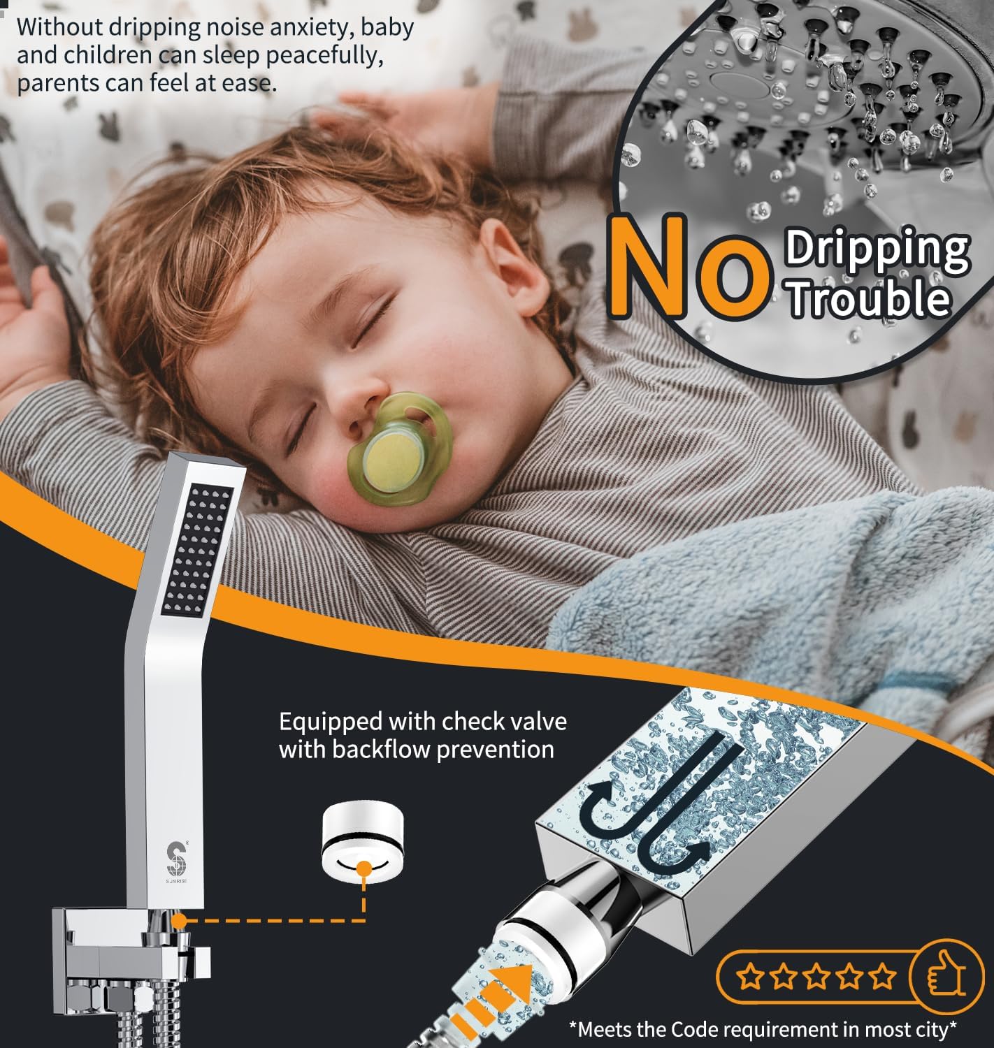 - Reliable Support & Certified Safety: Backed by 24/7 customer support, this Rain Shower Head and Handle Set ensures a stress-free experience. It features a cUPC certified pressure balance valve with built-in check valves to monitor water pressure and prevent scalding, approved by the California Energy Commission for standard 1/2-inch US pipe connections.