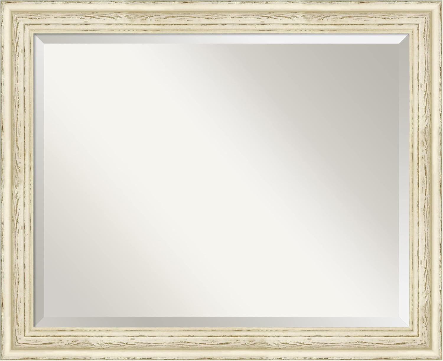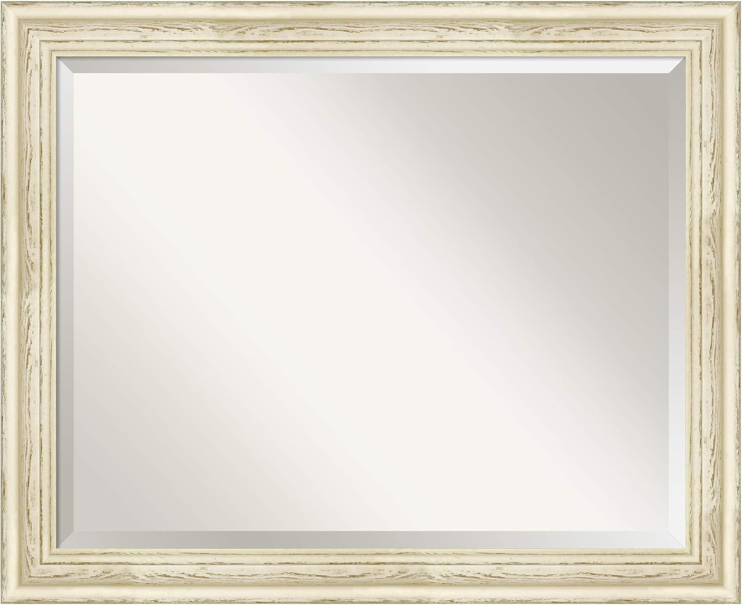 Amanti Art White Bathroom Mirror for Over Sink, 27x33 Country White Wash Rectangle Vanity Mirror, Large Rustic Farmhouse Wood Frame, Hangs Horizonally and Vertically, Bathroom Wall Decor, Beveled Edge