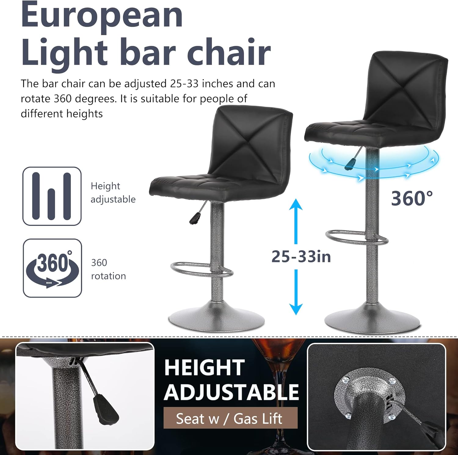 BestOffice Bar Stools Set of 2, PU Leather Swivel Bar Stools Kitchen Counter Height Bar Chairs with Hydraulic Adjustable for Kitchen, Dining Room and Restaurants