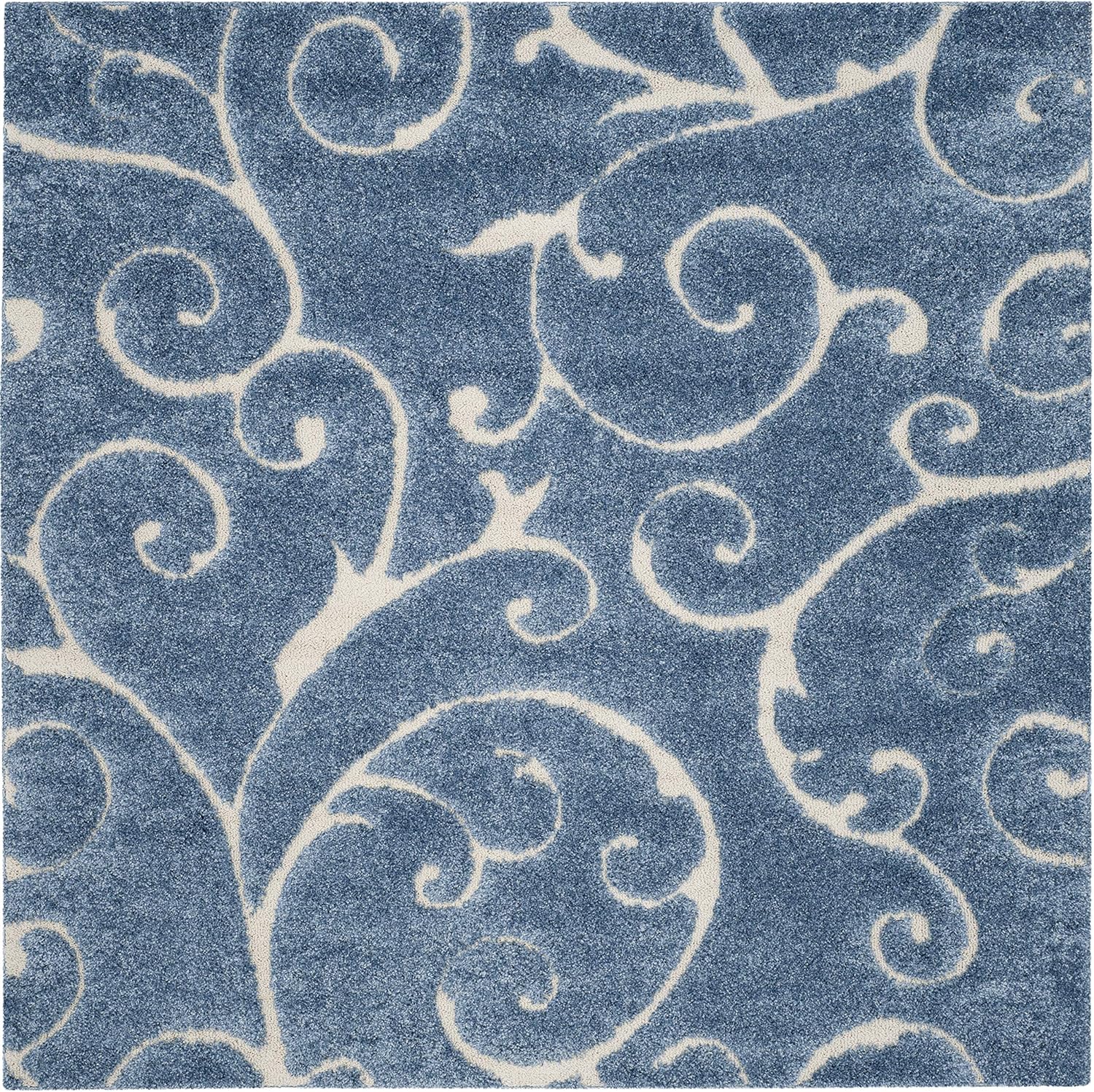 SAFAVIEH Florida Shag Collection Area Rug - 6'7" Square, Light Blue & Cream, Scroll Design, Non-Shedding & Easy Care, 1.2-inch Thick Ideal for High Traffic Areas in Living Room, Bedroom (SG455-6011)