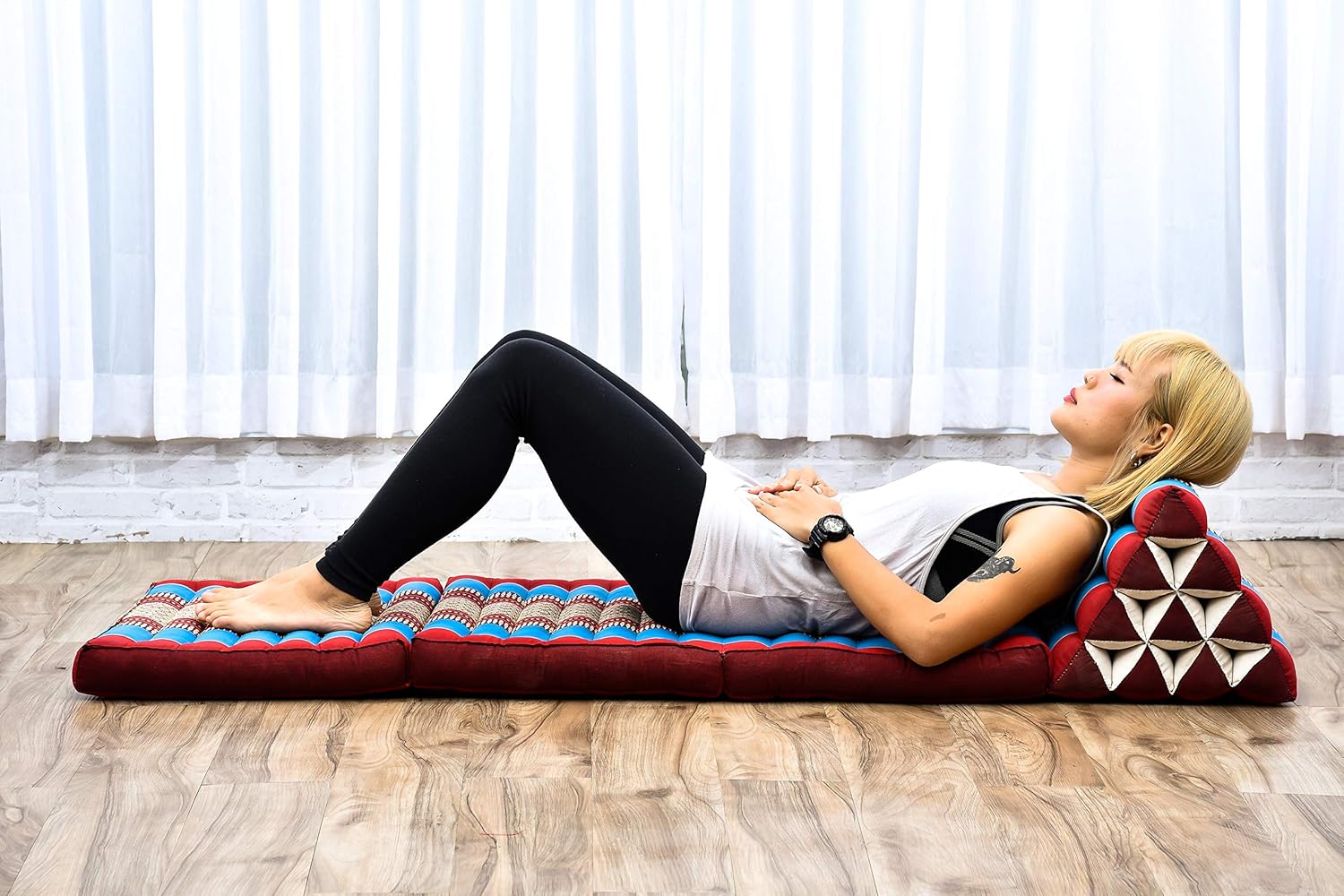 - Trifold Mat with integrated Thai triangle pillow. Ideal for reading, watching TV, gaming, or as a daybed. This floor pillow lounger doubles as a Japanese futon floor mattress or thai massage mat