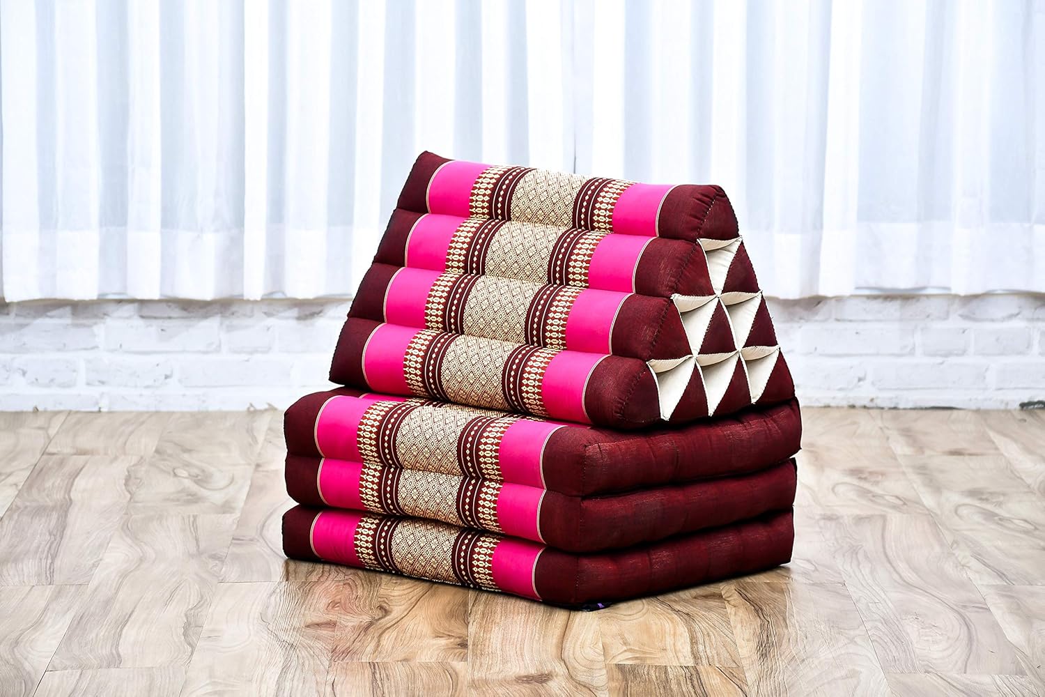 Leewadee - Comfortable Japanese Floor Mattress Used As Thai Floor Bed with Triangle Cushion, Futon Mattress Or Thai Massage Mat, 67 x 21 inches, Auburn Pink
