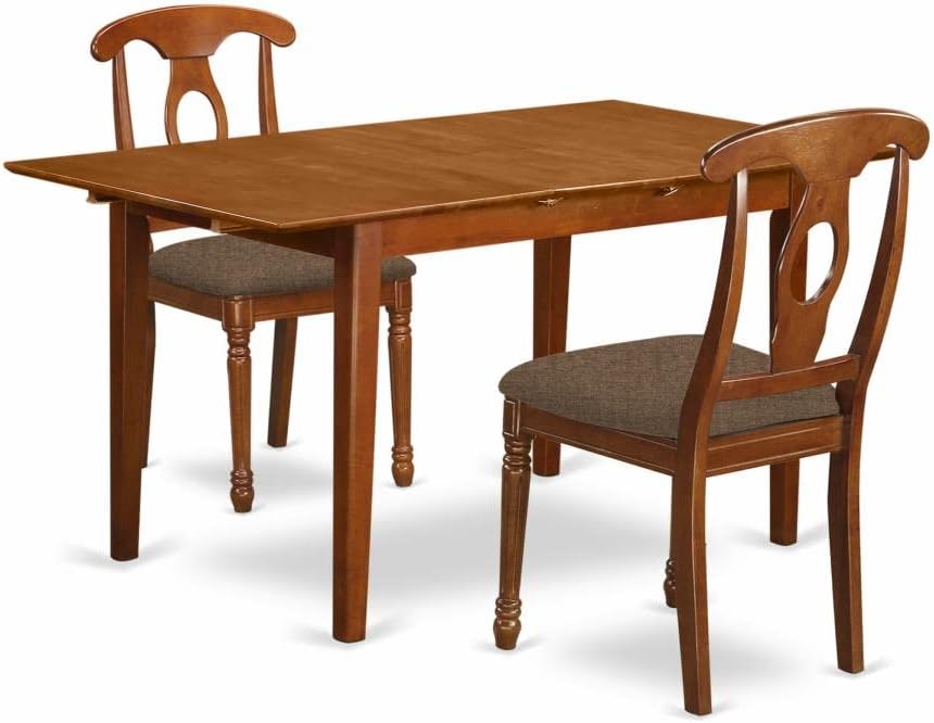 East West Furniture PSNA3-SBR-C 3 Piece Kitchen Table Set Contains a Rectangle Dining Room Table with Butterfly Leaf and 2 Linen Fabric Upholstered Dining Chairs, 32x60 Inch, Saddle Brown
