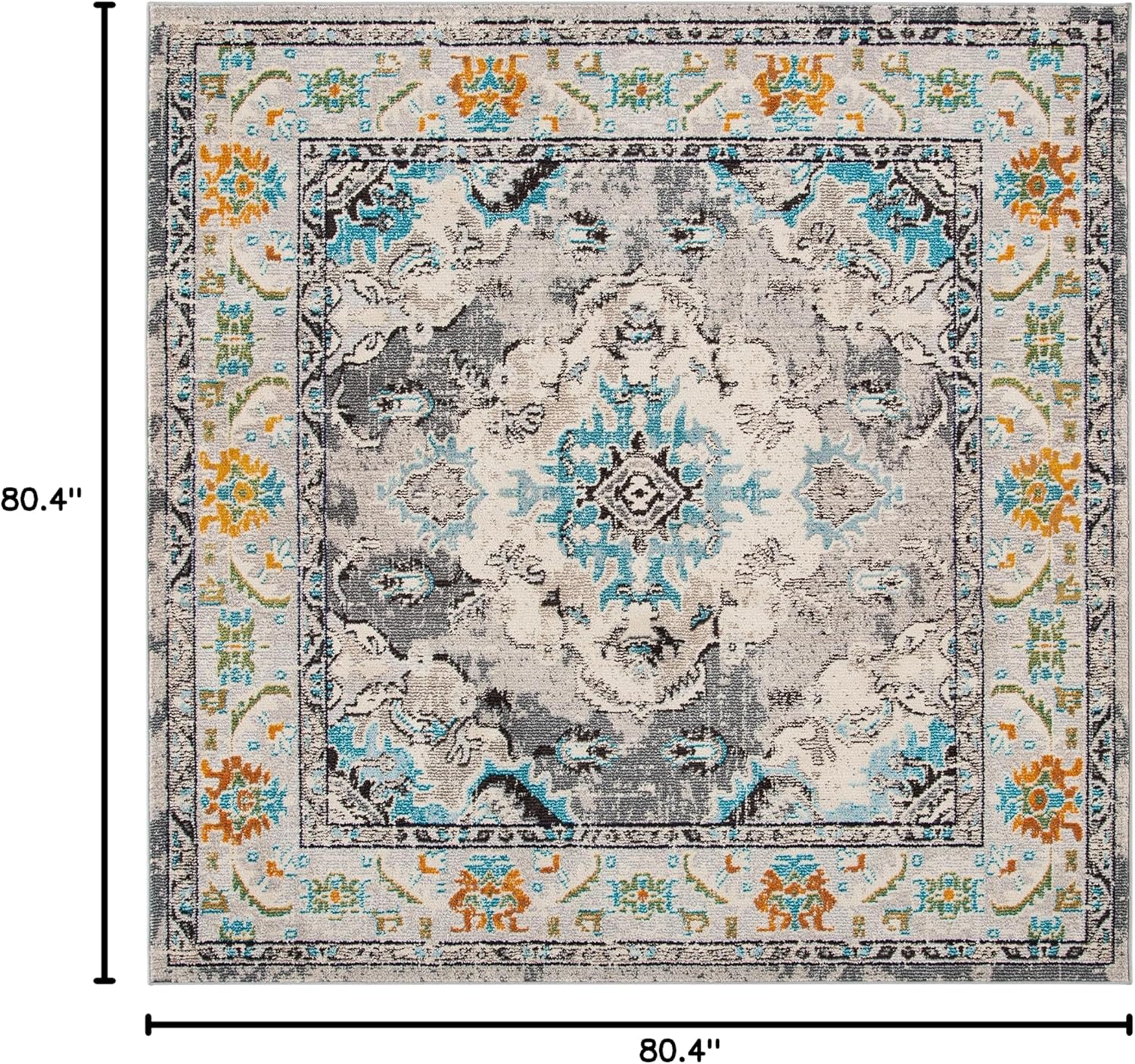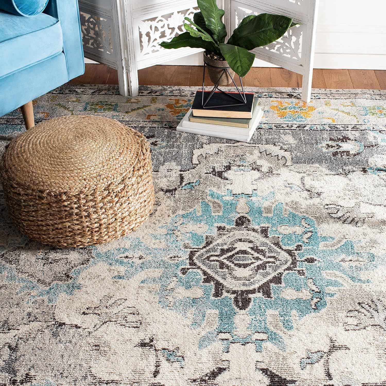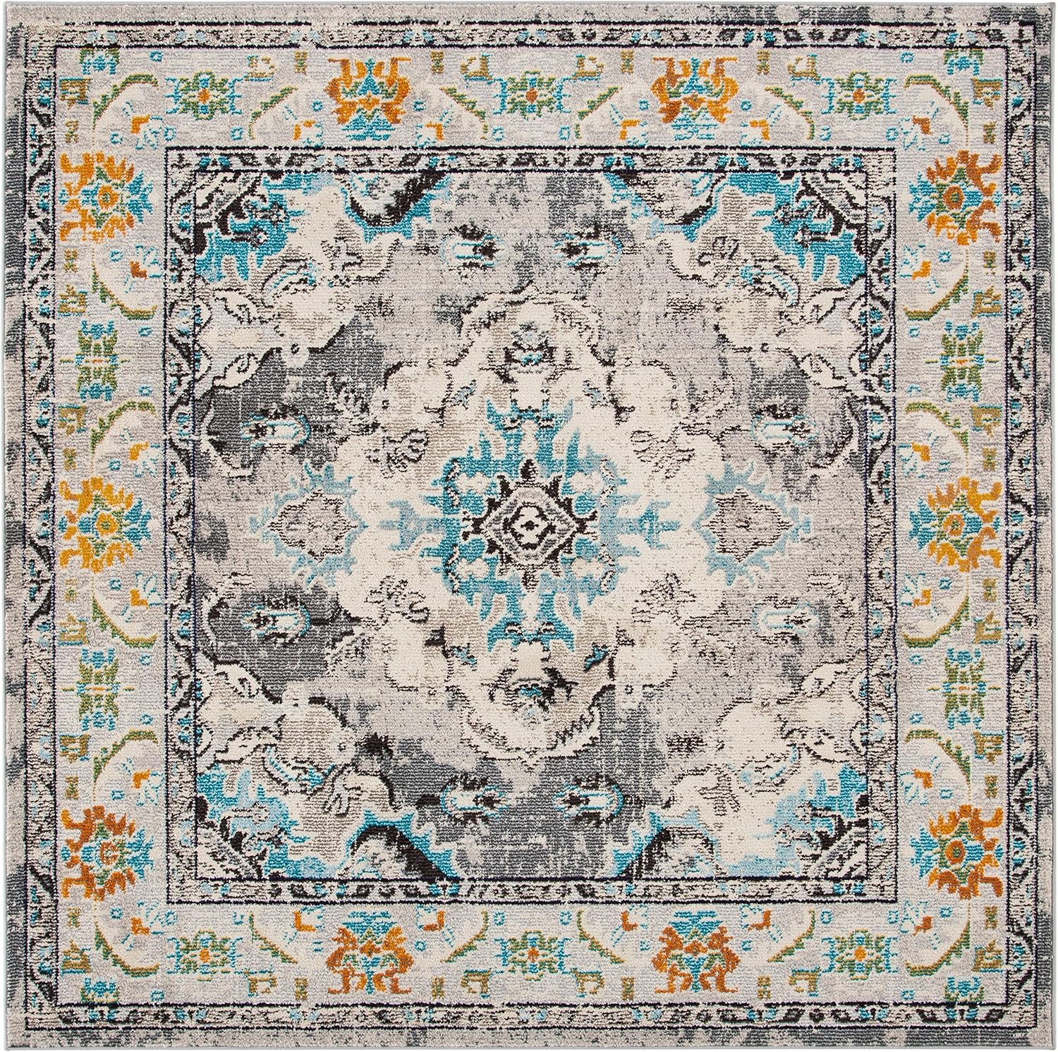 SAFAVIEH Monaco Collection Area Rug - 6'7" Square, Grey & Light Blue, Boho Chic Medallion Distressed Design, Non-Shedding & Easy Care, Ideal for High Traffic Areas in Living Room, Bedroom (MNC243G)