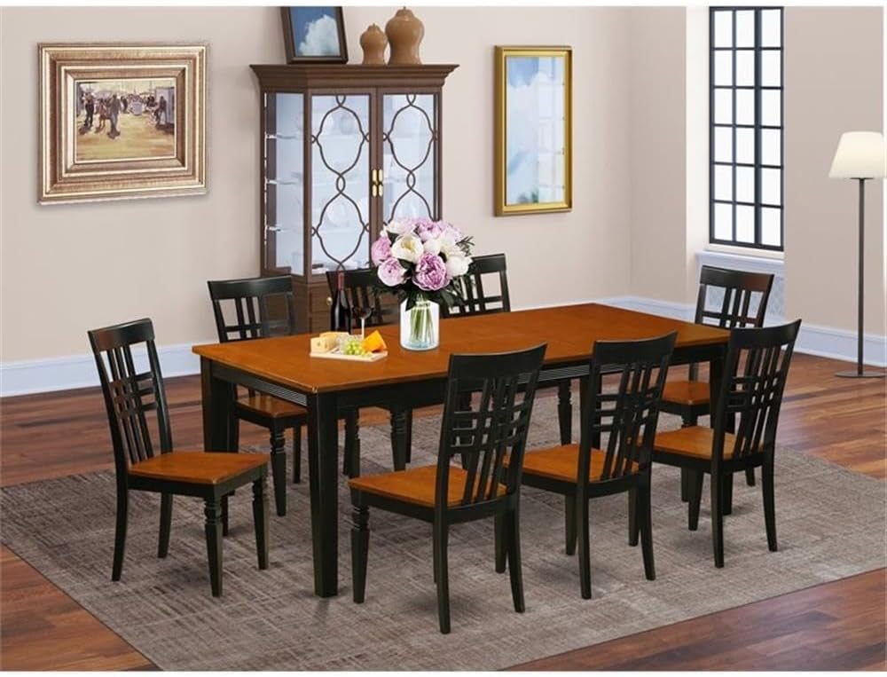 East West Furniture QULG9-BCH-W 9 Piece Dining Table Set Includes a Rectangle Dining Room Table with Butterfly Leaf and 8 Wood Seat Chairs, 40x78 Inch, Black & Cherry
