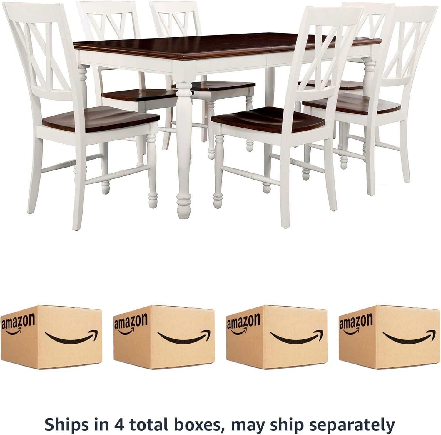 Crosley Furniture Shelby 7-Piece Traditional Dining Table Set for 6, Dinner Tables with Kitchen Chairs, Distressed White